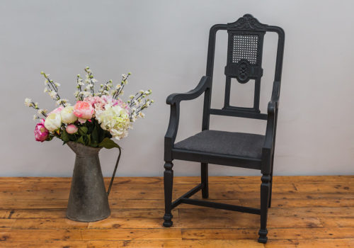 £0An original antique chair dating from the early 20th century that we refurbished. Painted in Farrow & Ball’s Off Black and then waxed with clear Beeswax. The seat was also recovered to offer a fantastically stylish chair with age and heritage. Simply a very flexible classic.