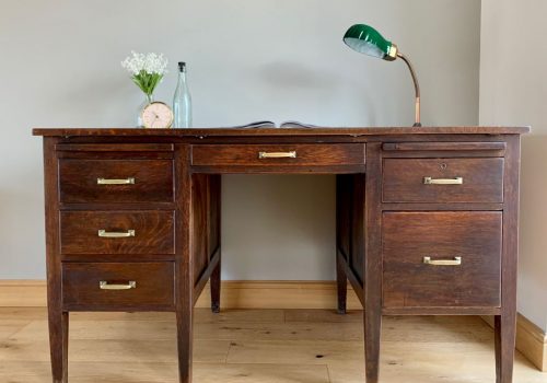These desk are most commonly referred to as teachers desks now and this one certainly has been. It came to us from the very well respected Gresham’s private school in Holt, North Norfolk. It even had the Gresham’s Loan papers still in the drawers, all of the department’s contact telephone numbers (naughty!) and a POLO mint. In this size and condition with such perfect provenance, we don’t expect this desk to hang around for long.