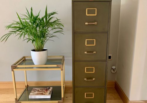 A great set of original mid century steel filing drawers by. Most of these cabinets are by Roneo or Vickers. Villiers cabinets are much harder to find; especially in this condition Great colour and condition, with perfectly aged original brass ware and nice drawer front detailing. A very nice slim size for home or office. The cabinet and drawers have all been fully cleaned and the runners re-oiled. Superb condition for its age with plenty of industrial design and character. Industrial style and practicality all rolled in to one.