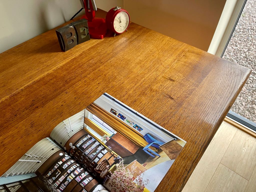 English, handmade oak with quality carpentry joints. Perfect for your home office or small business desk.