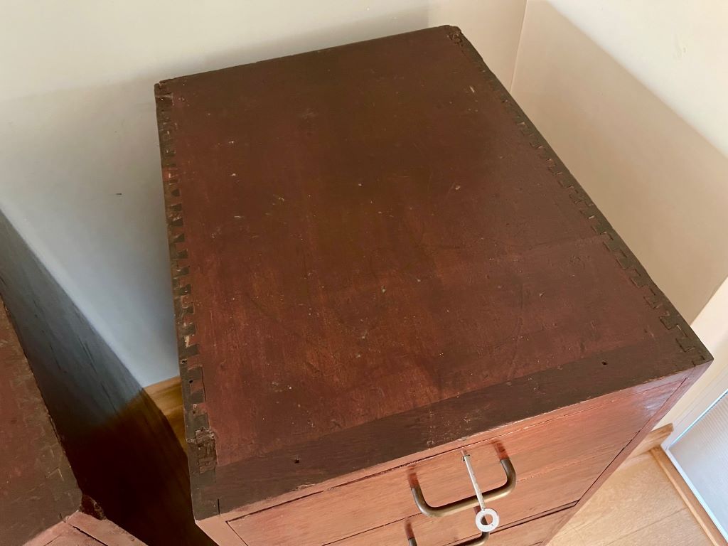 A pretty rare and unique pair of strong safe drawers in original mahogany finish. The drawers date to around the 1930’s and are stamped GR VI. They were originally supplied to Midland Bank by WM Nicholson & Son of Leeds. Strongroom Security Specialists. The drawers are solid and all lock with strong brass locks. The drawers have their original key. They would make great drawers in a home office or small business. especially if valuable or confidential items needed to be safely locked away.