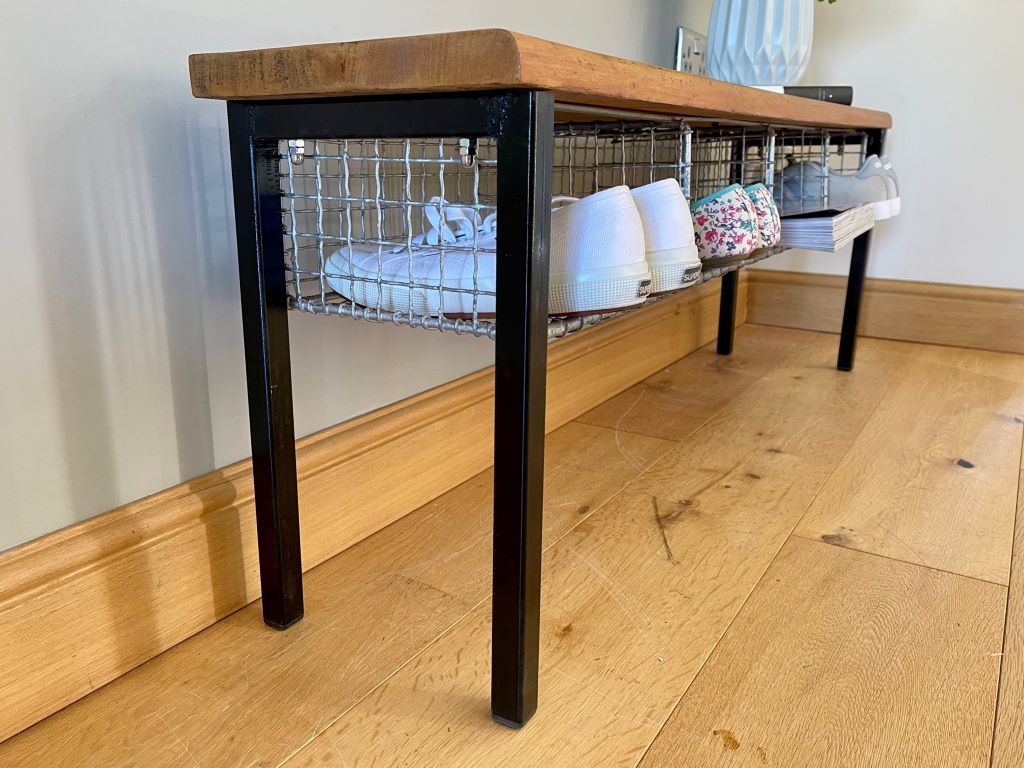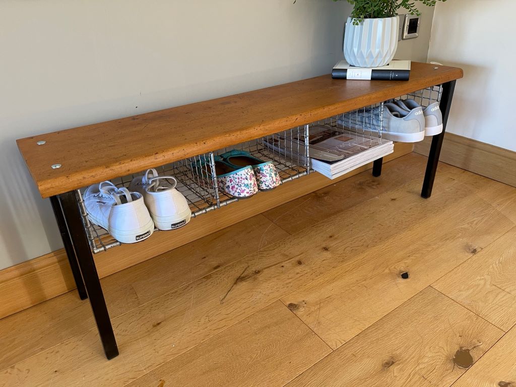 This gym bench dates to around the late 1950’s to early 1960’s. They came form a school in Somerset and are now full restored and cleaned – making them so cute and stylish! The bench top and baskets are completely original but we had to make up new legs as the old ones were no good. The legs are made from steel and we have added black plastic inserts at the bottom so top floors being scratched. All the perfect old school styling ready for contemporary new homes.