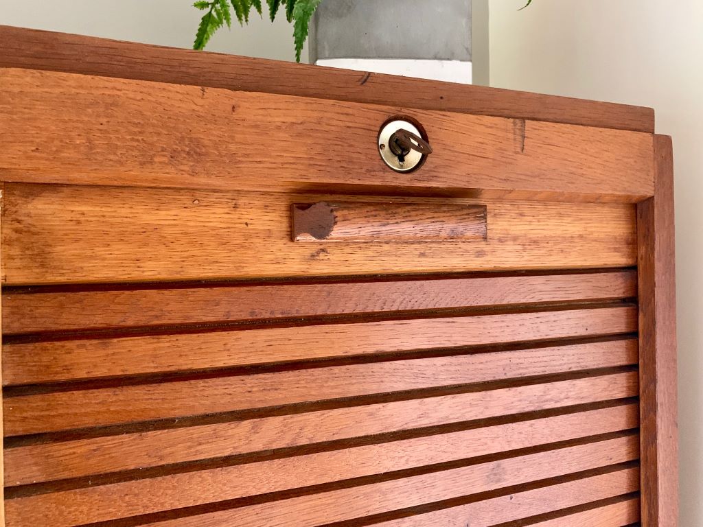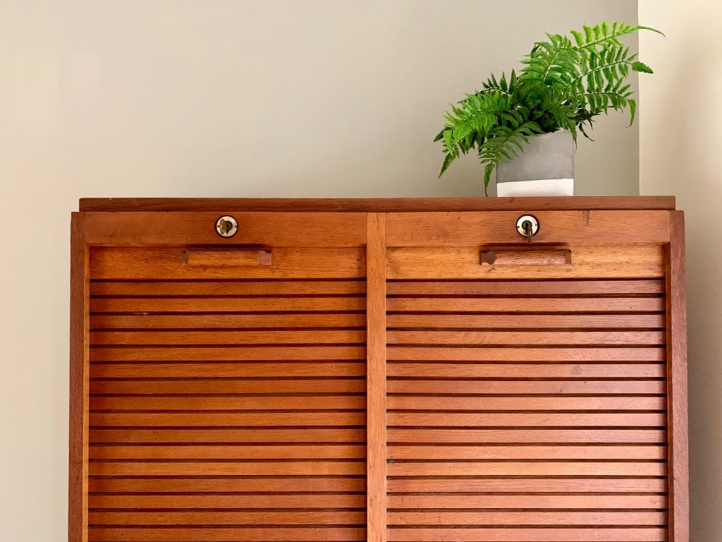 We rarely see these cabinets in such excellent original condition. A beautiful colour, size, and design. Both doors run freely making this a very practical piece that can be used on a daily basis.