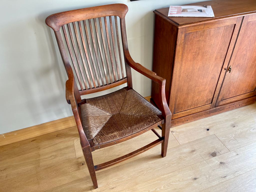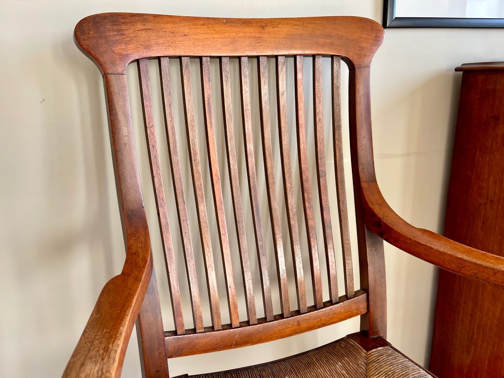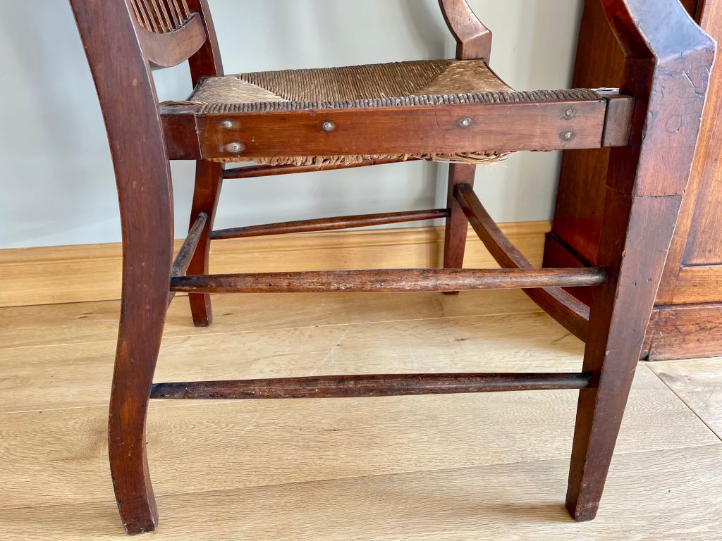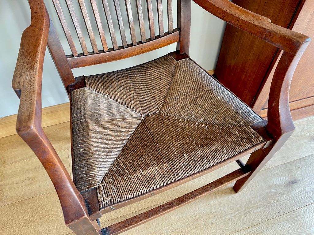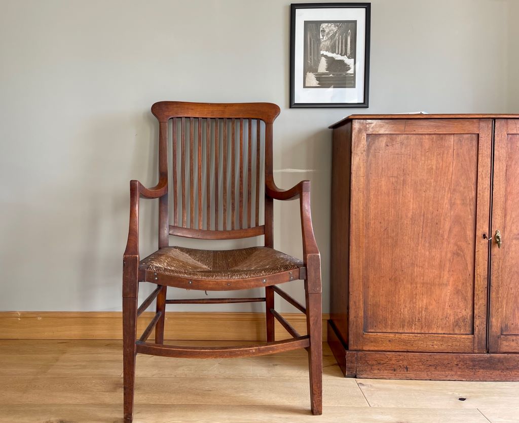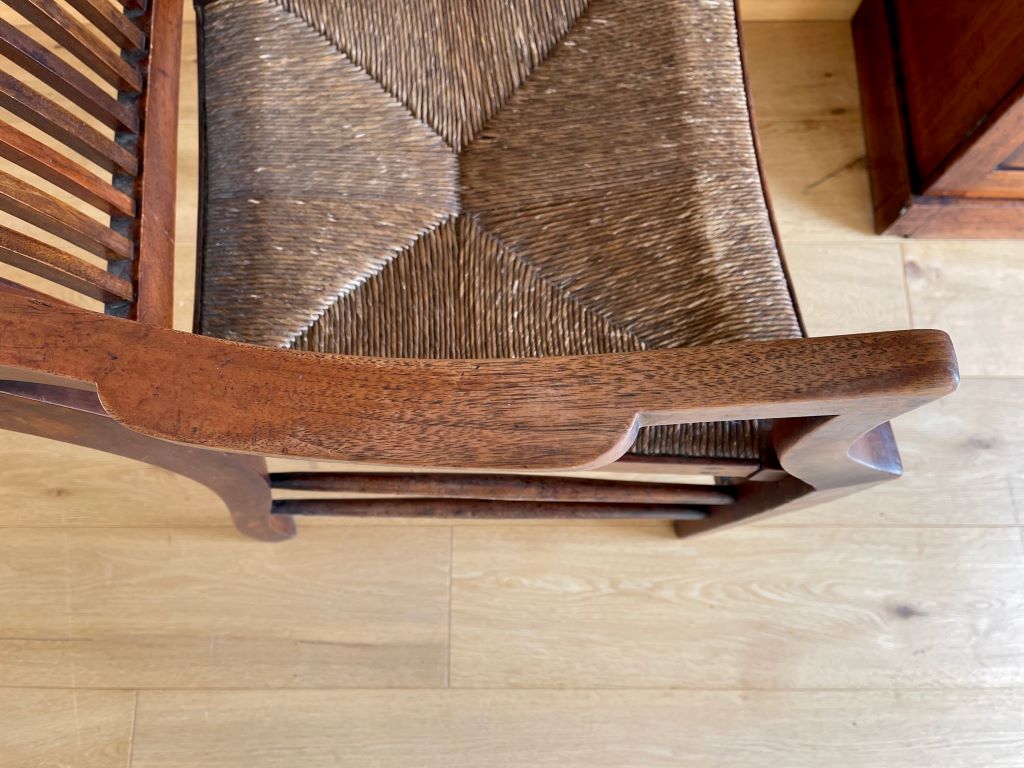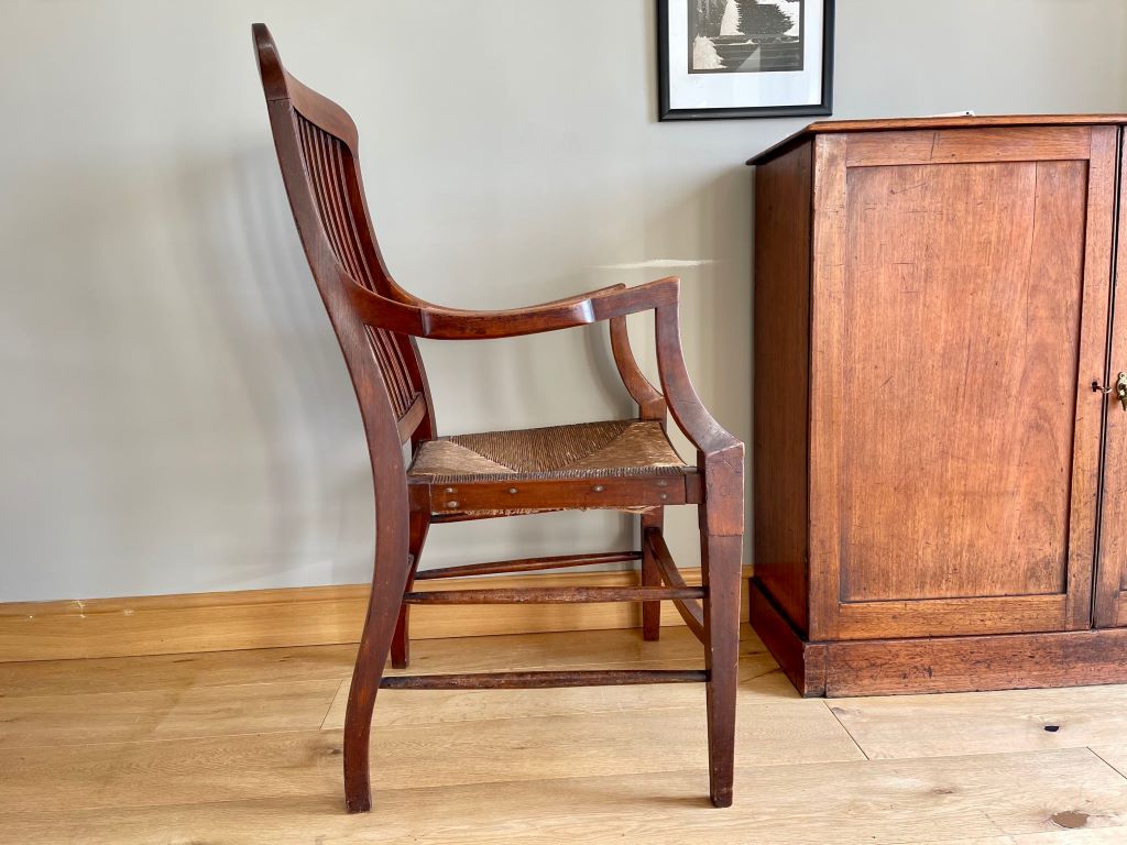This is a gorgeous early 20th Century Victorian open Armchair in solid mahogany with its original paper cord seat. It has generous proportions, a beautiful design and shape with superb colour and patina. The original paper cord seat has aged perfectly and is solid to sit. We adore this chair as a dress chair, a statement piece or even a very usable office/ desk chair.