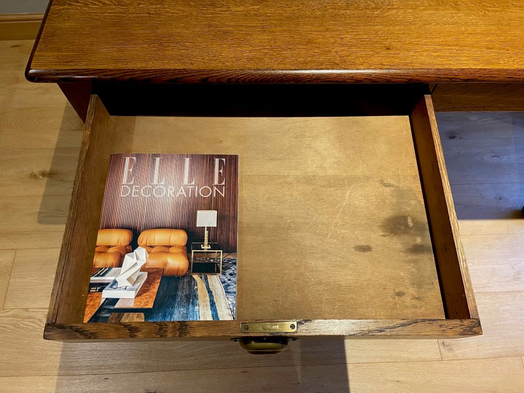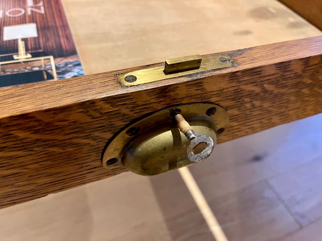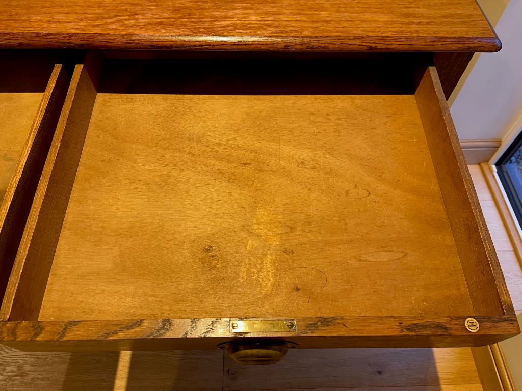 Both drawers run freely and are clean inside. This will only get better with age and appreciate in value. A superb quality antique desk.