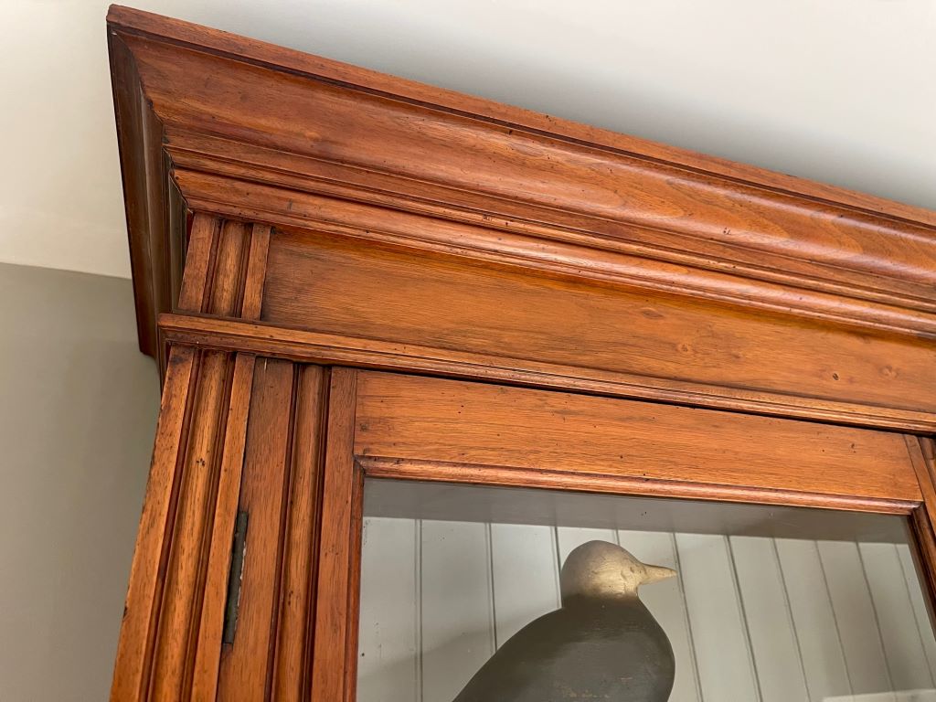 A very stylish early 20th Century Edwardian glazed dresser / bookcase in original oak walnut. It dates from around 1900 to 1920 and has original cabinetry, glass, handles,  and internal bolts. We fully cleaned and gently restored the whole exterior then repainted the top internal section with Farrow & Ball Wevet colour paint. This has given the piece the mix of antique, rustic and contemporary. It is very stylish, subtle in design and very flexible in the colours – to match a vast array of room palletes. The colour is superb having aged beautifully over the last 100 years+. There will be cosmetic marks on the piece, please check all photographs and just ask if you have any further questions over the condition.