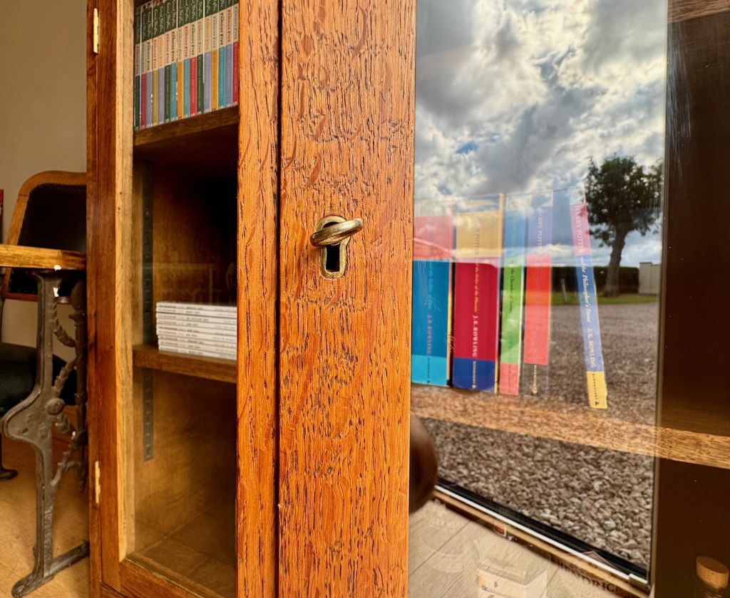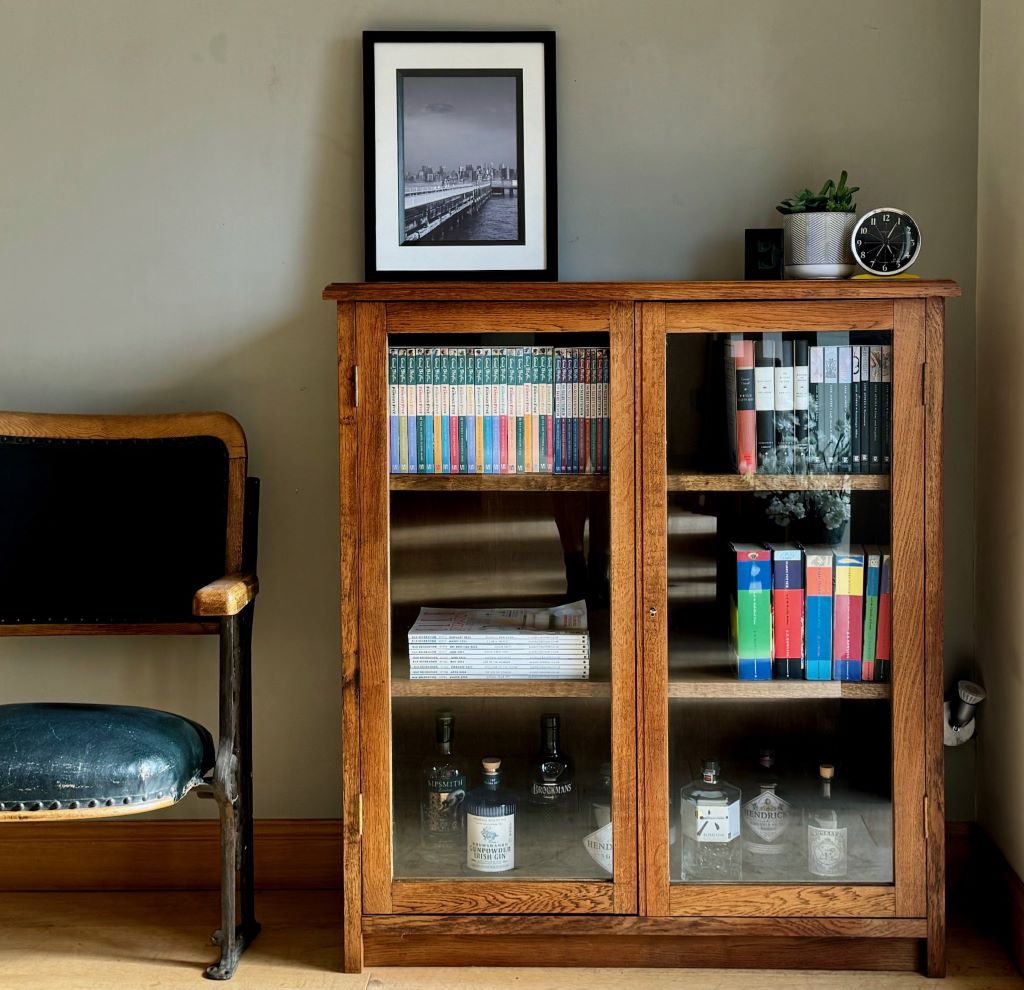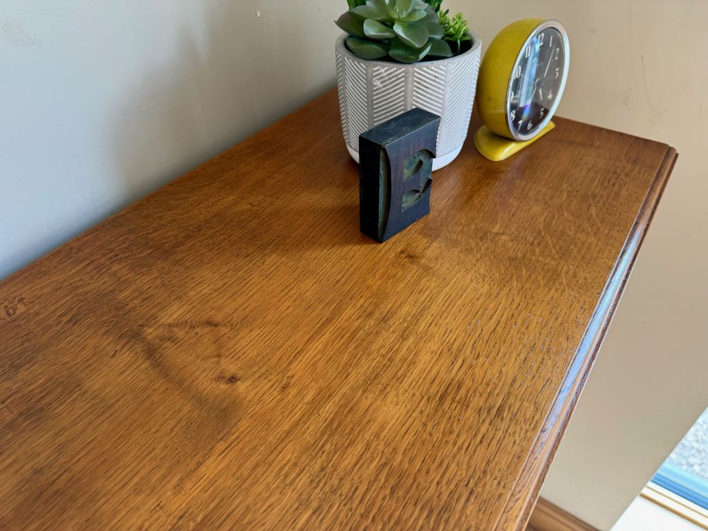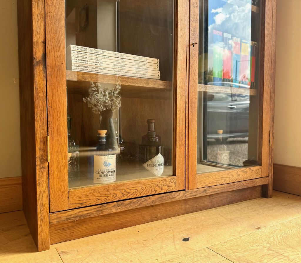 A gorgeous solid oak bookcase dating from around the 1970’s. It weighs in the region of 50kgs, reflective of the quality and thickness of the solid oak used in its production. Even the shelves are made of thick solid oak. Each shelf is height adjustable via the side support system. Simply move the side supports to the place you want them and reinsert the shelves. We love the clean simple lines and beautiful oak grain; all in a size that makes it easy easy to fit in to almost any room. The bookcase retains its working lock and key.