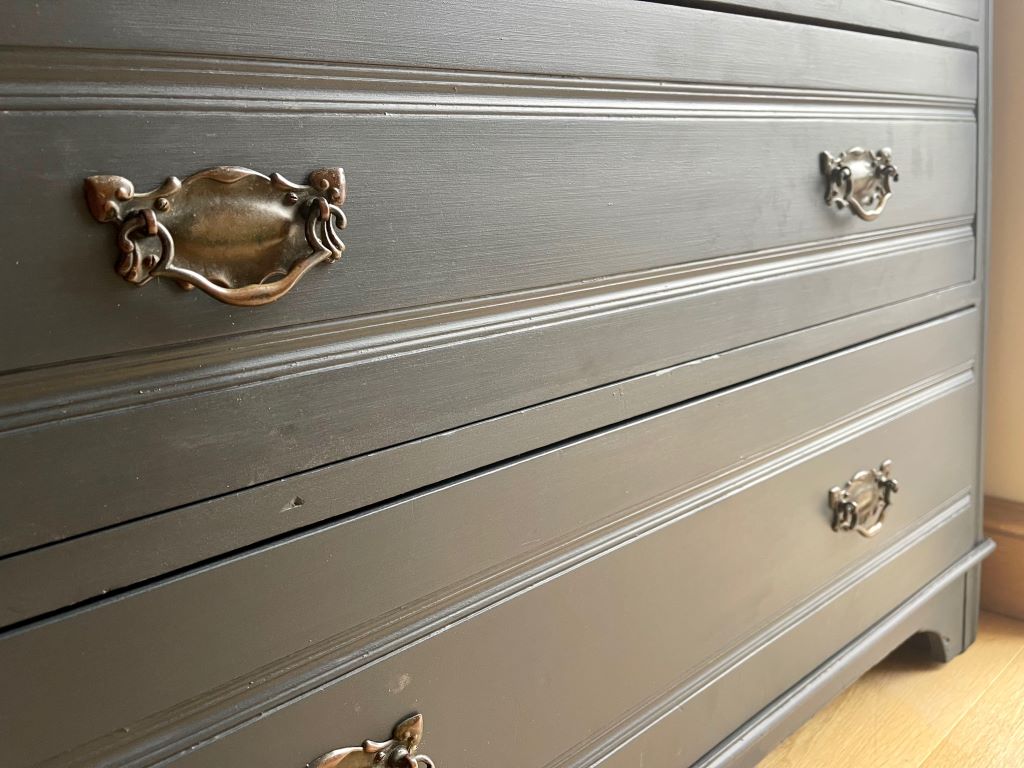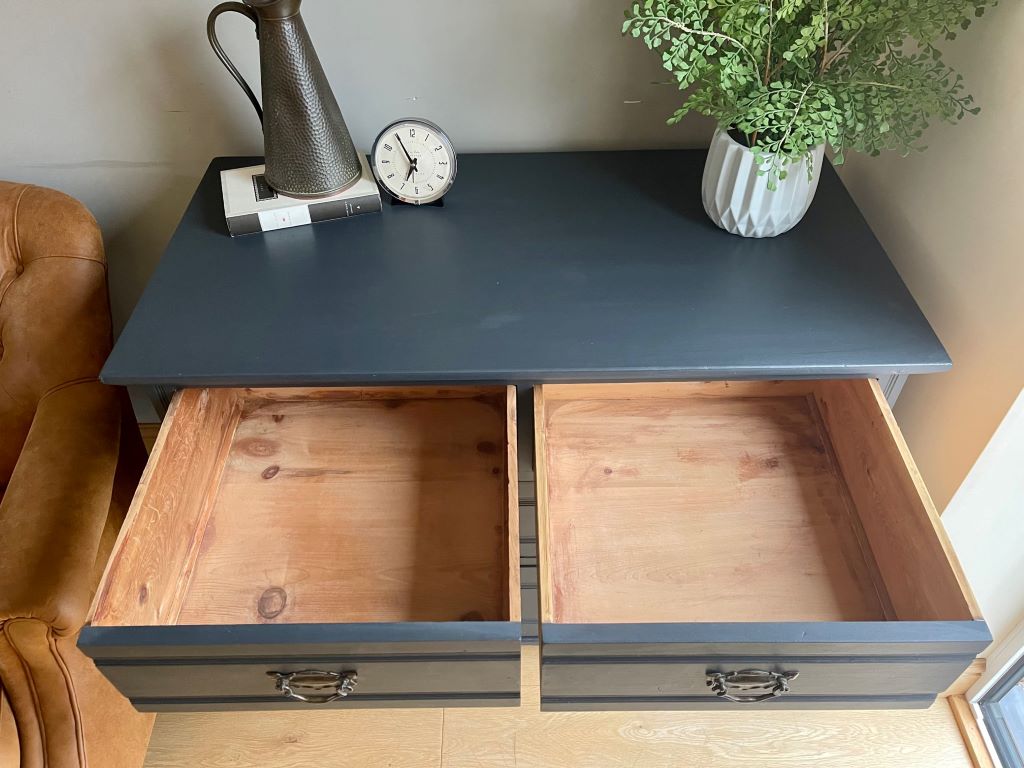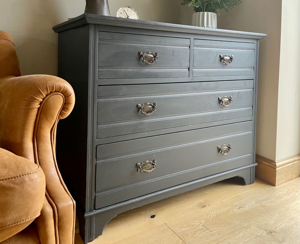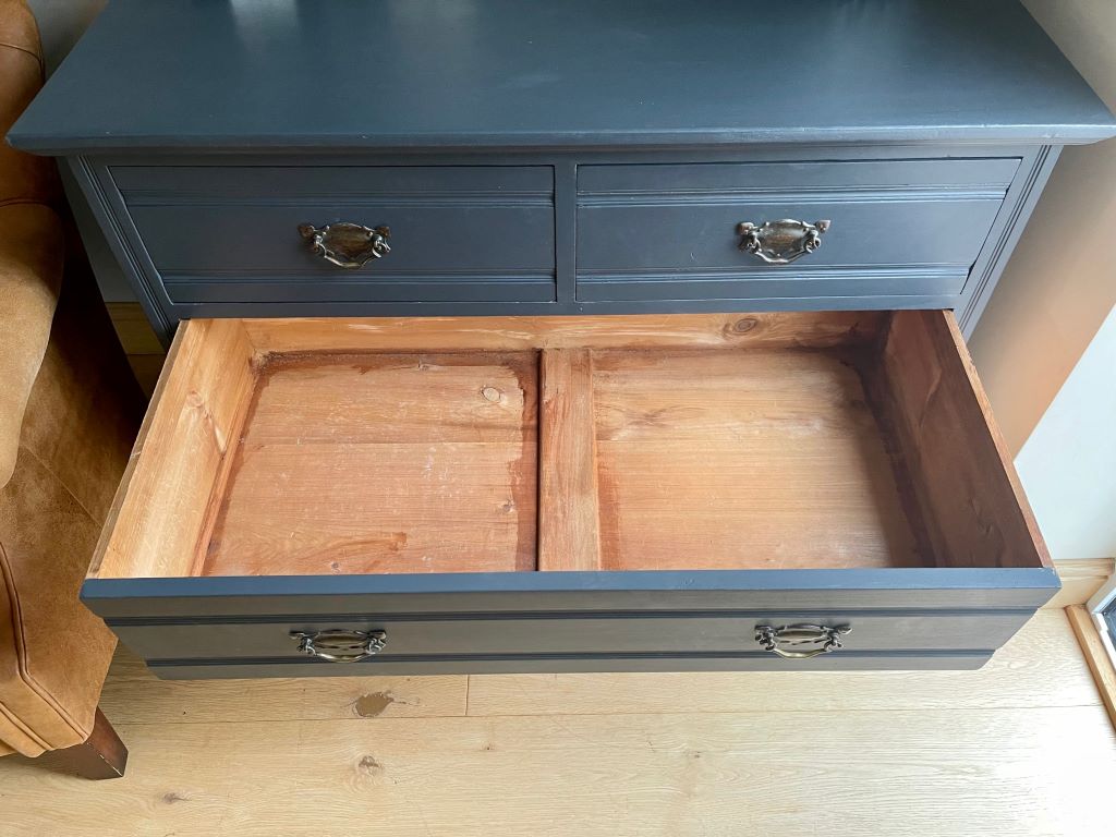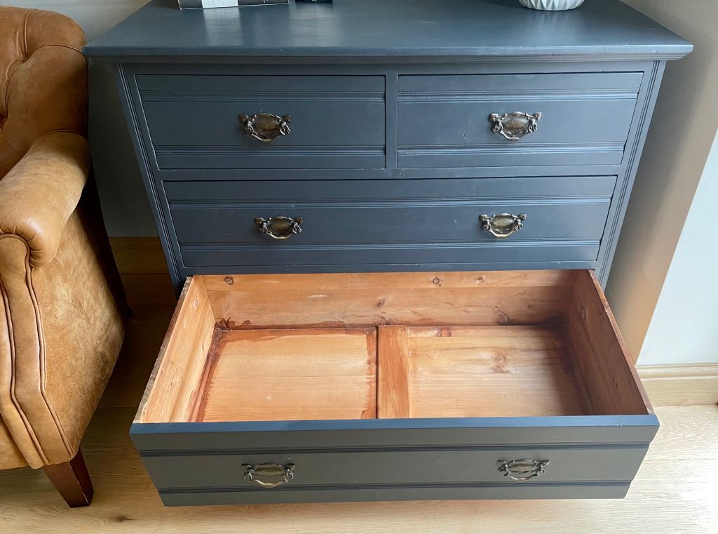 We love the colour and the fully finished effect. Transformed from dowdy ‘brown’ to a contemporary classic that will adapt and fit with a plethora of interior styles. The storage is generous and super stylish. This chest of drawers could be used in practically any room you needed them.