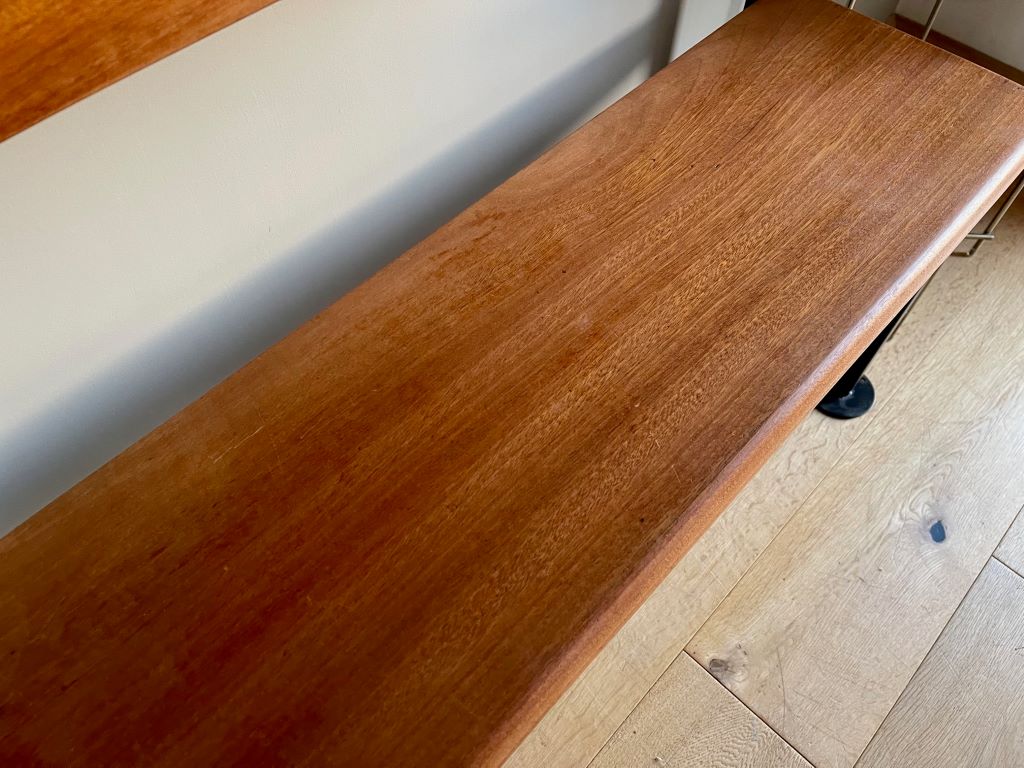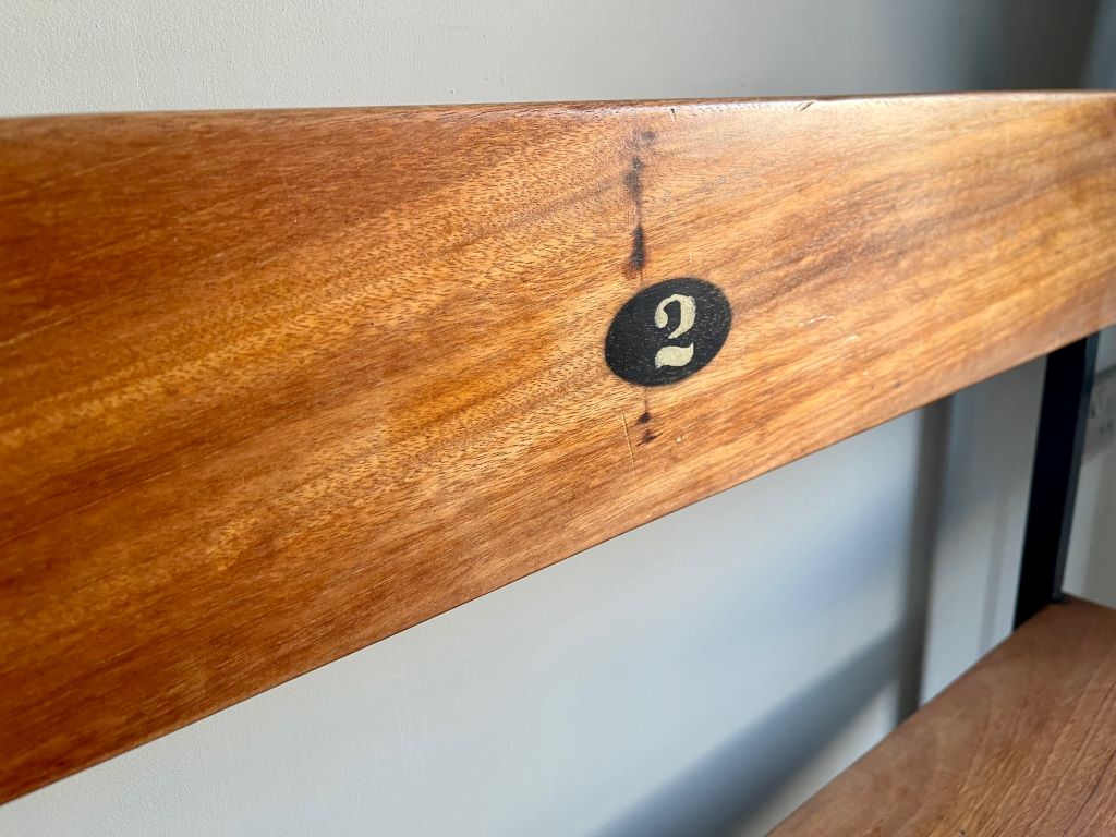 This gym/ changing bench dates to around the early to mid 1970’s and came to us from a school in East London. It is in amazing condition for its age. Constructed from steel box section and solid teak throughout it has really good solid weight and looks fantastic. It is in completely original condition. We just gave it a good clean, and teak oiled the wood for replenishment and refresh.