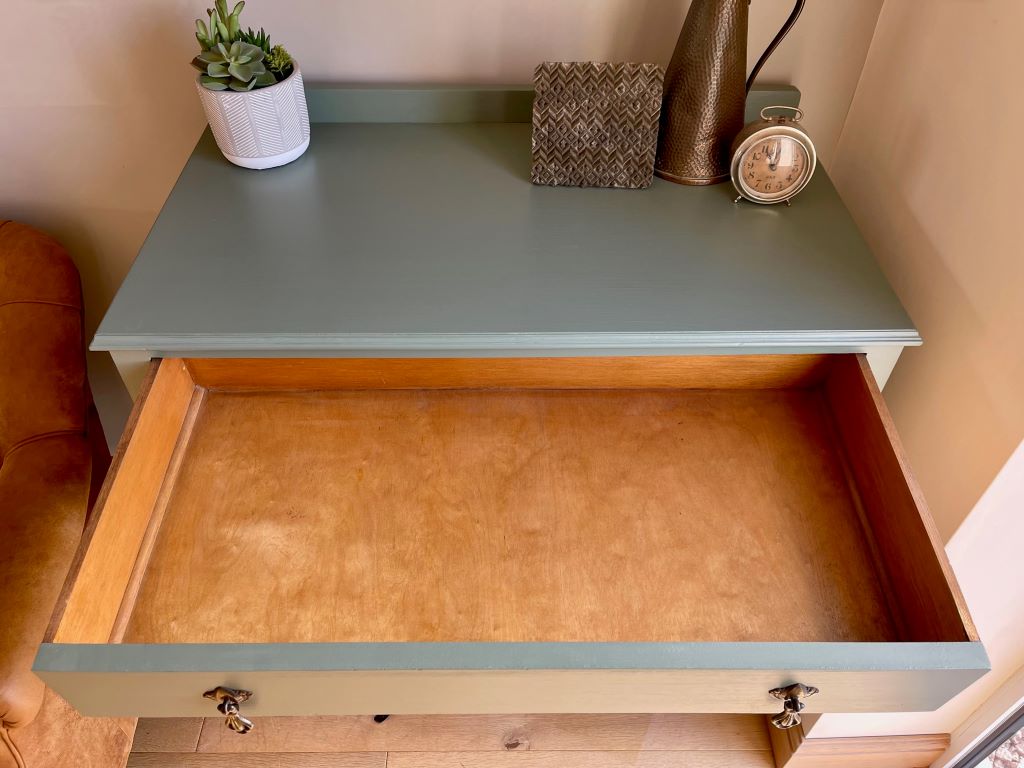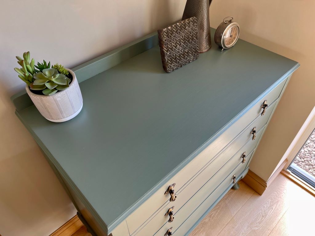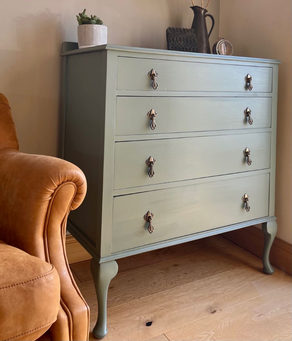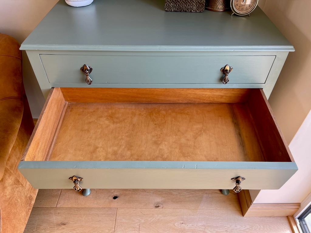 We love the colour and the fully finished effect. Transformed from dowdy ‘brown’ to a contemporary classic that will adapt and fit with a plethora of interior styles. The storage is cute, elegant and super stylish. This chest of drawers could be used in practically any room you needed them.
