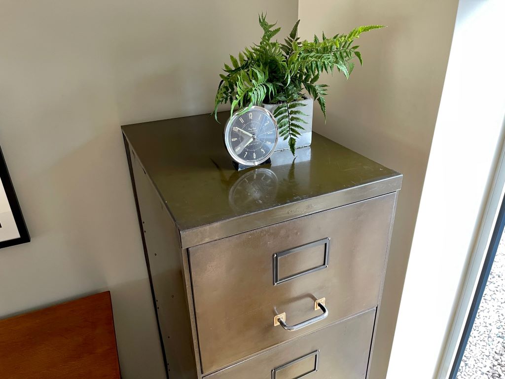 A very nice size for home or office. The cabinet and drawers have all been fully cleaned and the runners re-oiled. Plenty of early antique industrial design and character. Industrial style and practicality all rolled in to one.