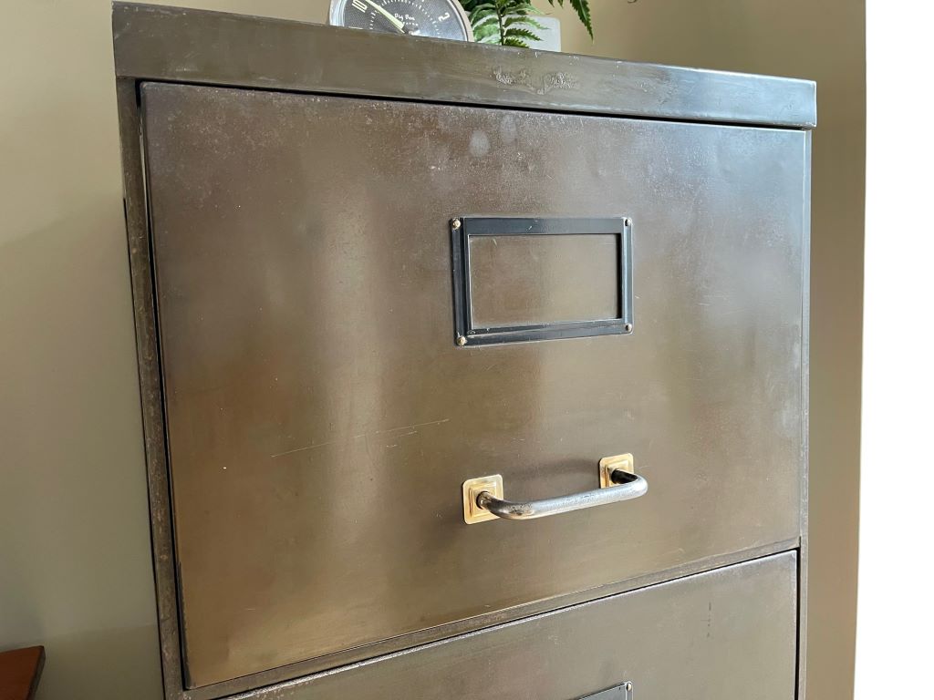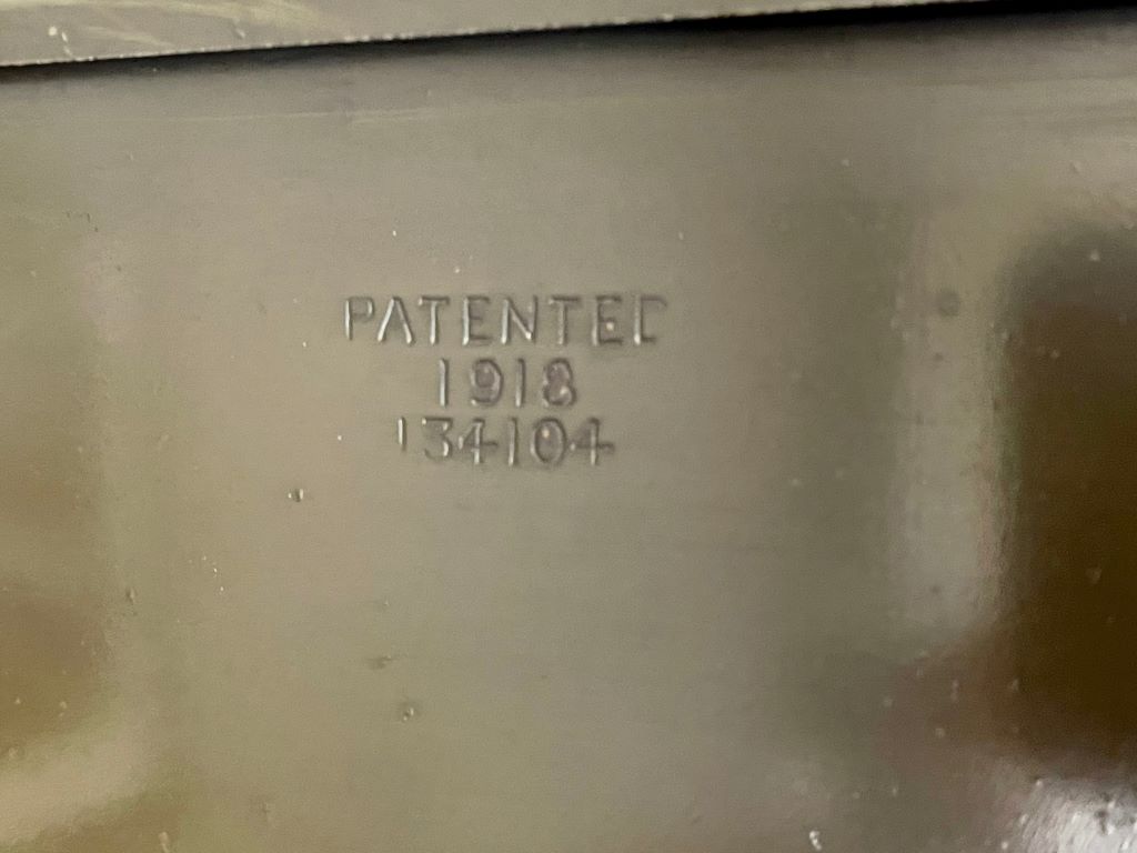 A great set of original early 20th century (c 1920-40) steel filing drawers by Art Metal (London, SW1). Most of these cabinets are by Roneo. Art Metal cabinets are much harder to find; especially in this condition with this finish. This cabinet is unusual in that it is an old example. Most are 1940-60’s but this one is stamped ot the side with the patent of 1918. Great colour and original condition, with perfectly aged original handles. They are very rare to find in unscratched condition.