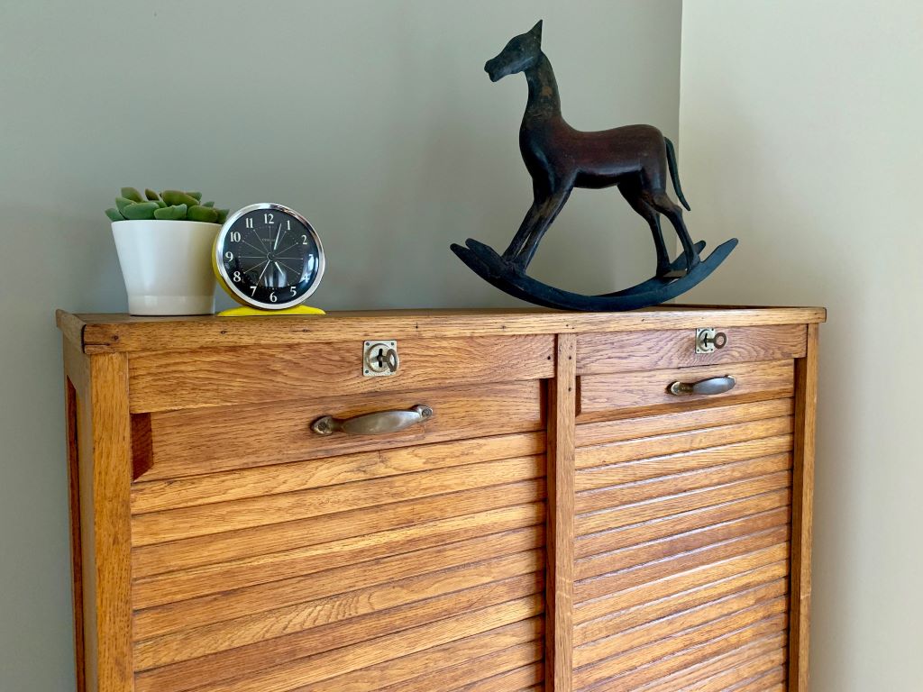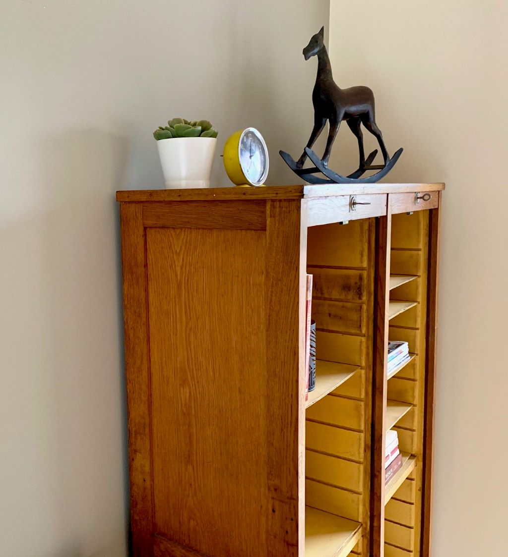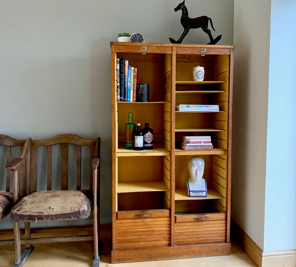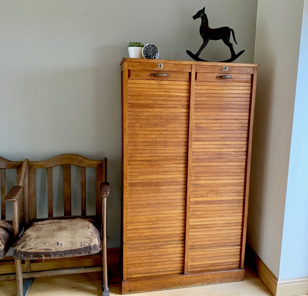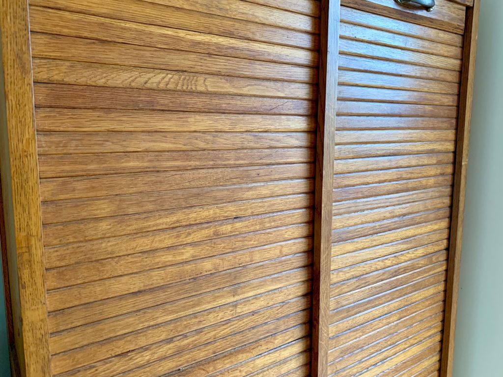 Early 20th Century German Tambour Cabinet in Oak