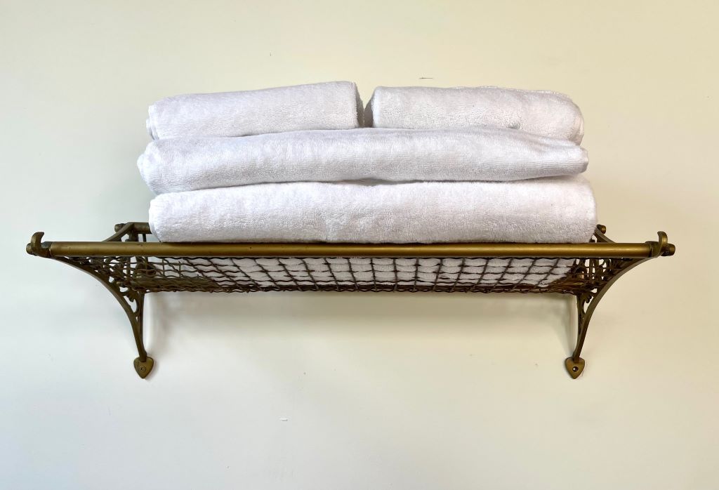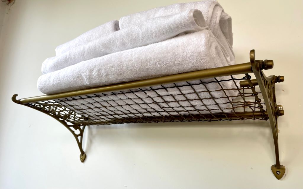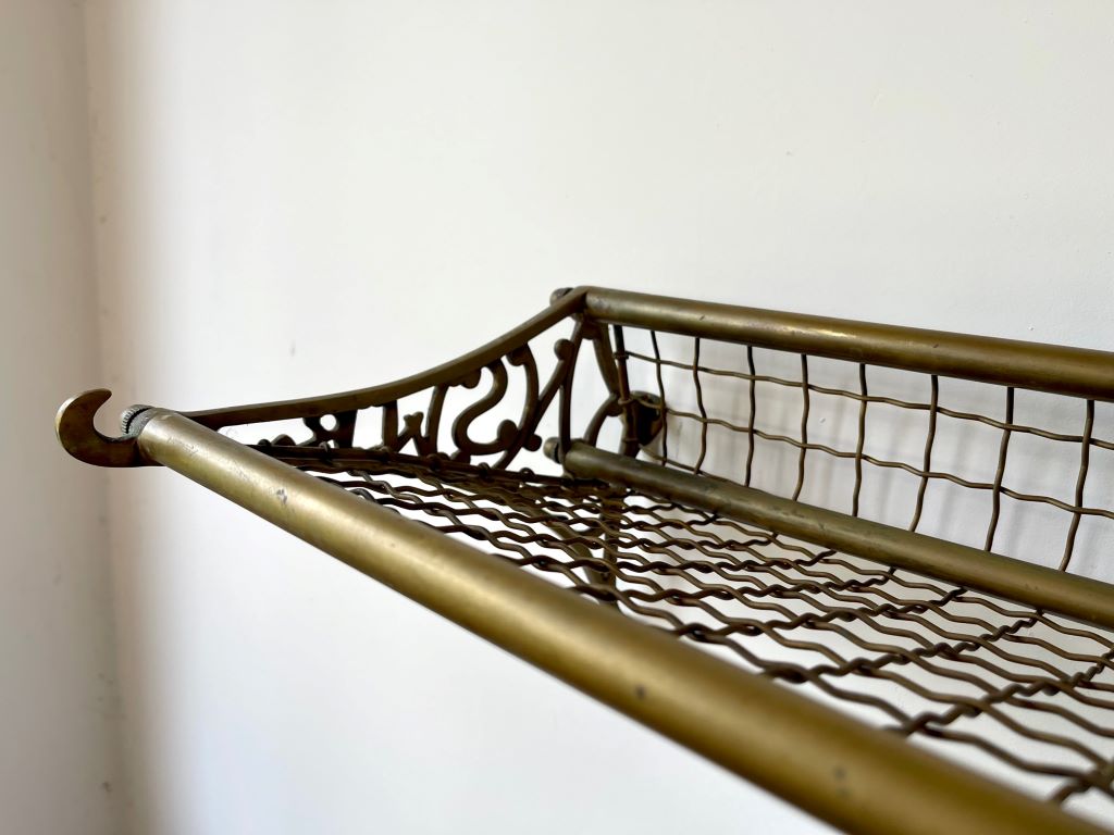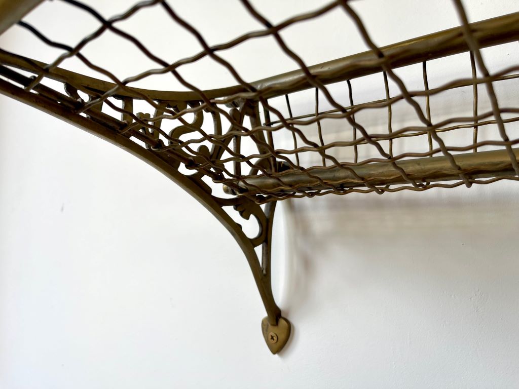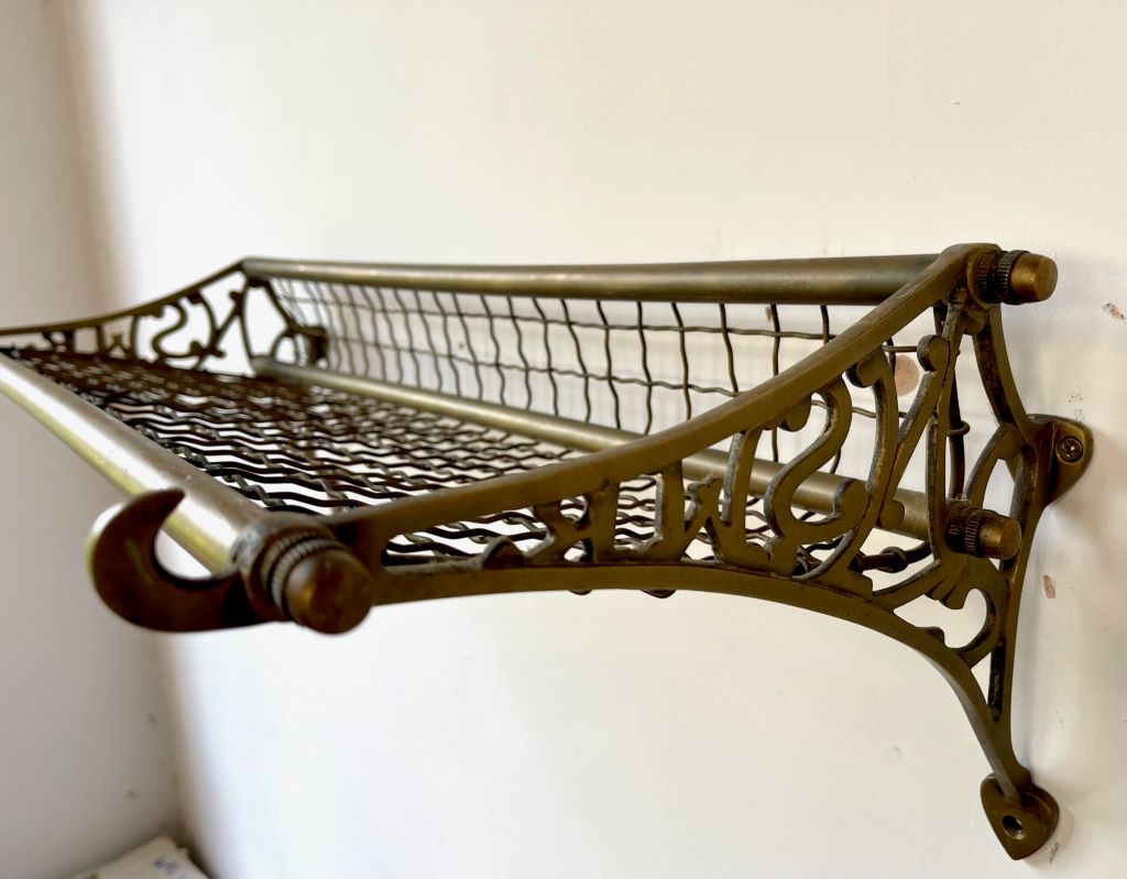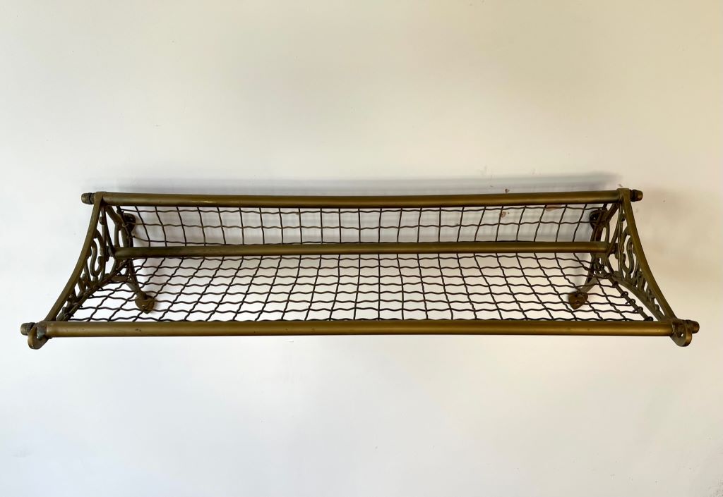 Stunning original early 20th century overhead luggage racks from a train on the New South Wales Railway in Australia. The New South Wales Government Railways was the agency of the Government of New South Wales that administered rail transport in New South Wales, Australia, between 1855 and 1932. These racks are beautifully designed, perfectly aged, in super condition and very very useful. The are made from brass sides and wire with copper tube rails. Each side has the NSWR log scrolled in to the brass. They are incredibly rare to find in this condition. A perfect size for the hallway and somewhere to very stylishly hang those coats, scarves and hats. Alternatively they would make superb towel holders in the bathroom or pan and utensil holders in the kitchen – along with many other potential uses.