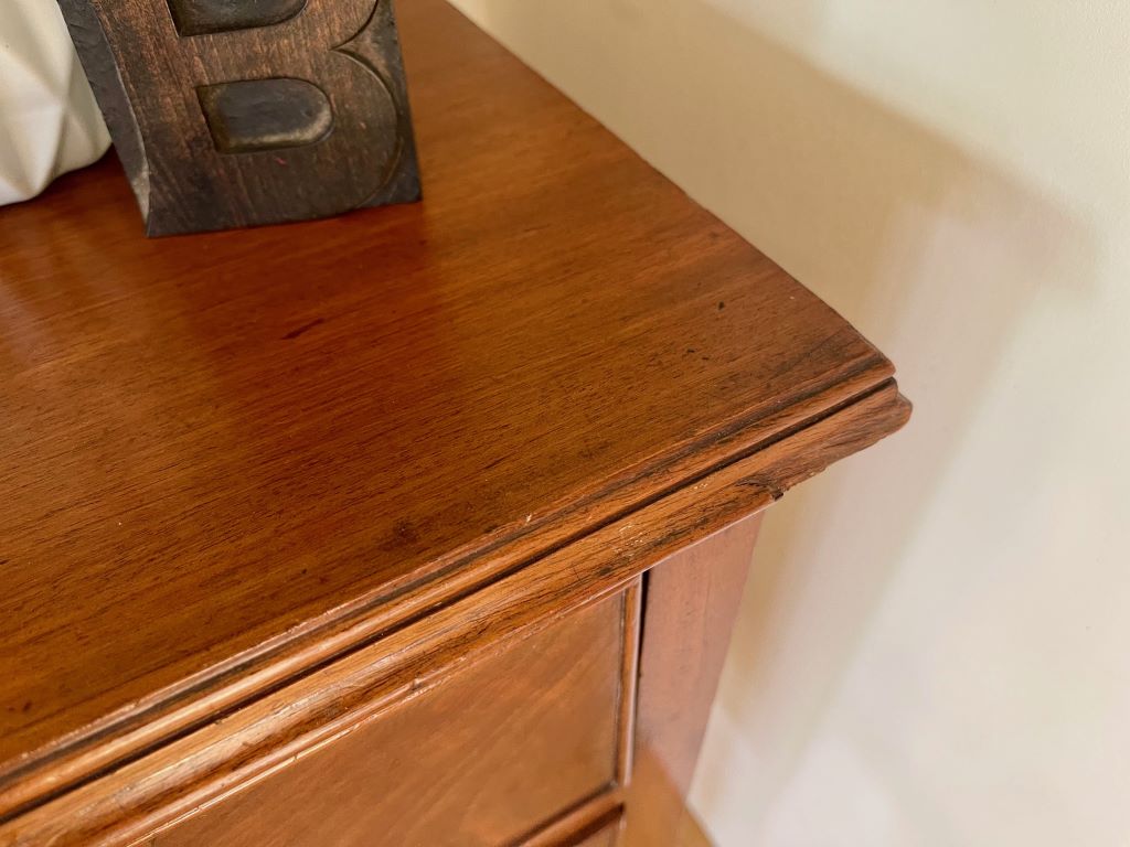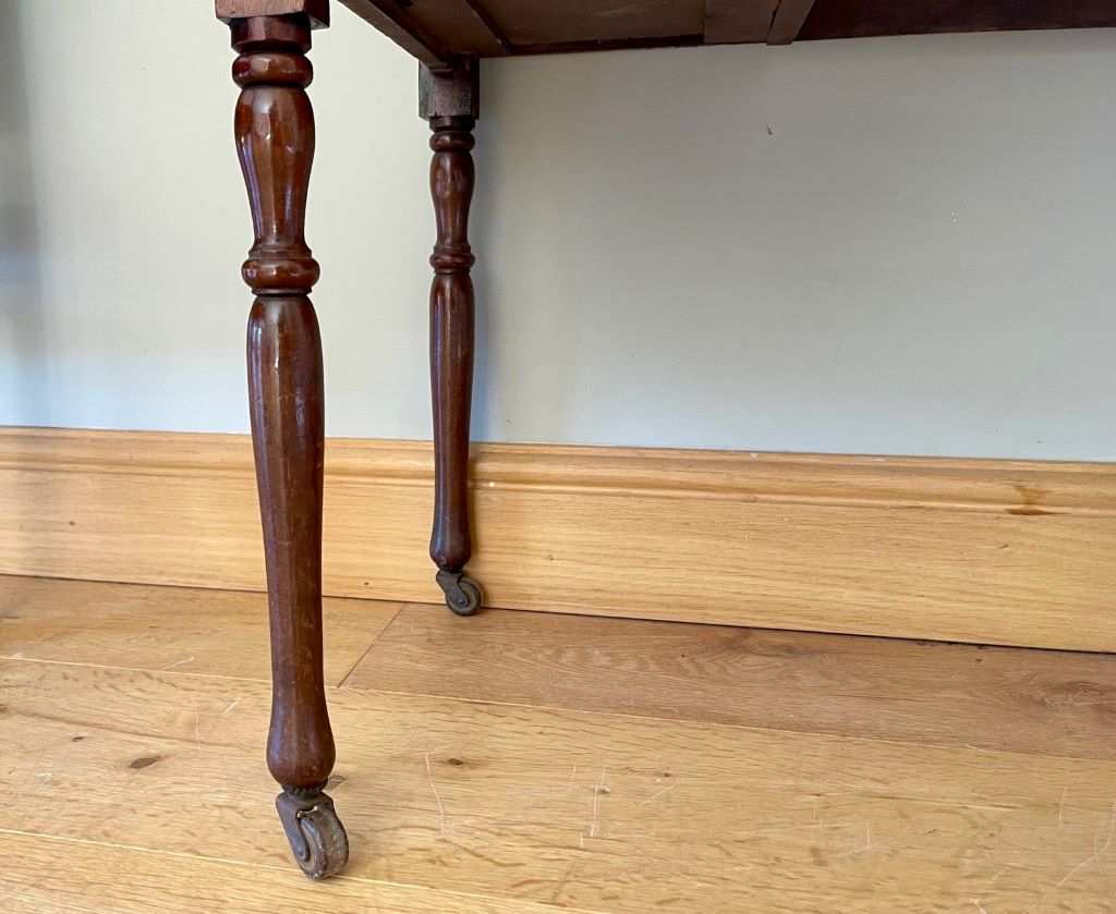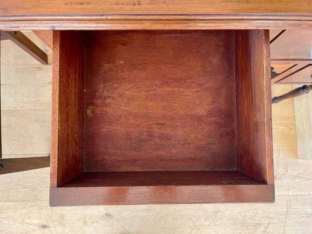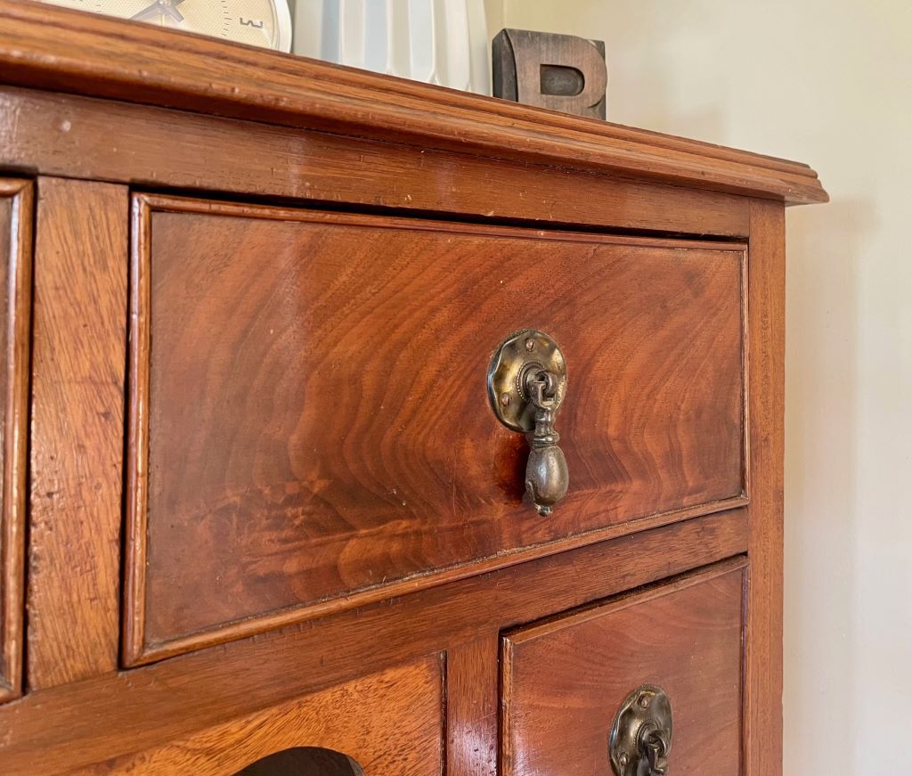 This console is an original antique produced in the early 20th Century (c 1900-1915). It was hand made in mahogany with elegant hand turned legs, typical of the Edwardian period. We think it is a very pretty and elegant piece that could fit in a hallway as a console table, a bedroom as a compact dressing table or a bathroom for toiletries; amongst other possibilities. It is in very good antique condition with just a small amount of old damage to one corner (see photograph). All drawers run smoothly and are clean internally.