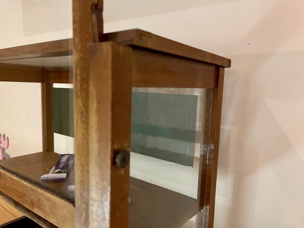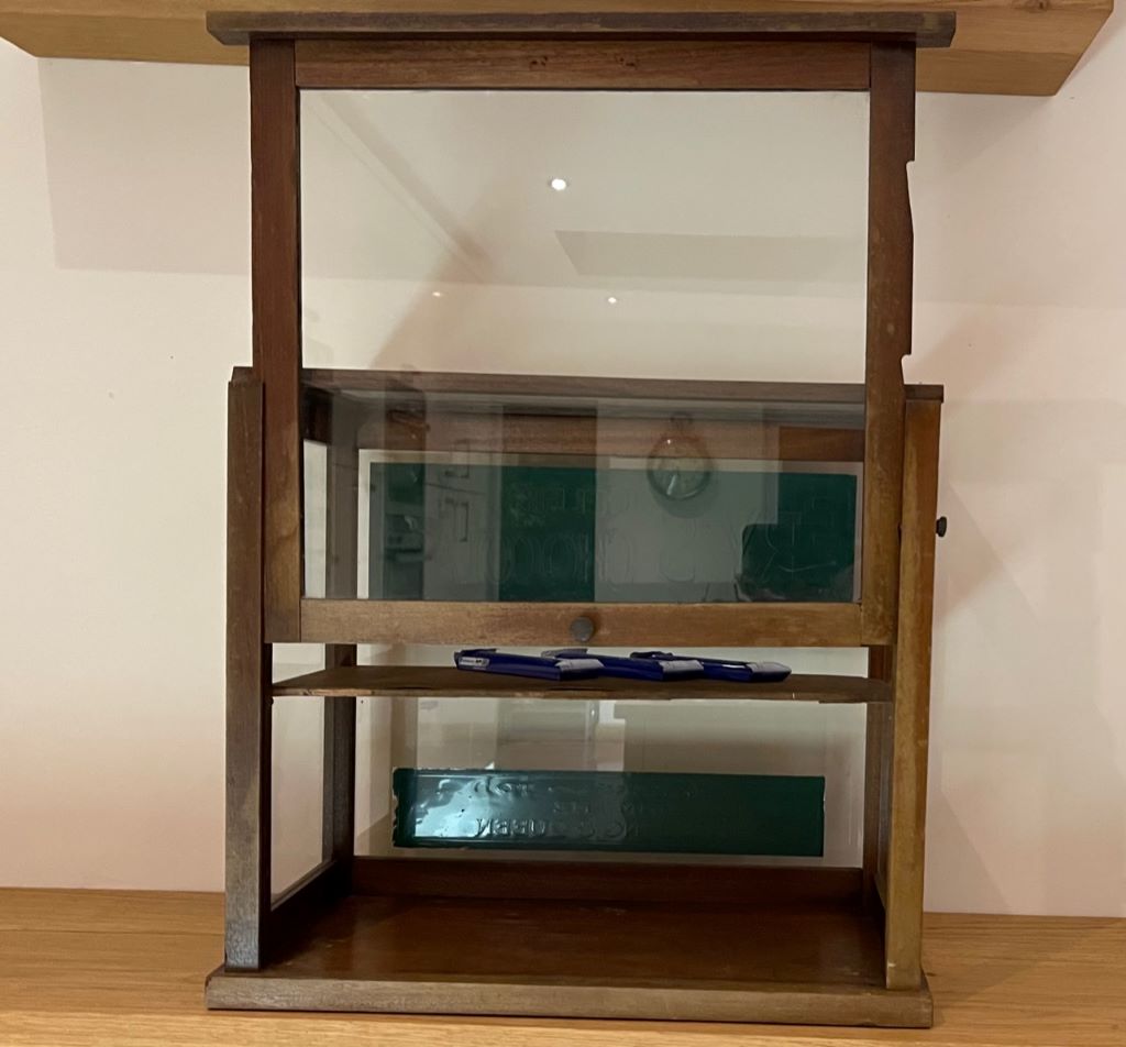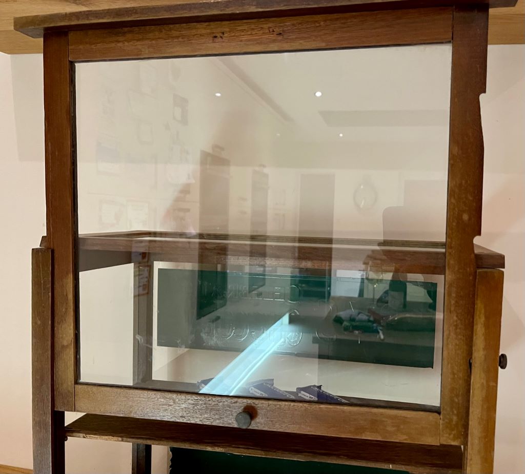 A superb Fry’s Chocolate/ Confectionery shop display cabinet. Dating from the early 20th Century and probably 1910-1920, the cabinet is made from mahogany wood framework, glass and hand painted signage in green and gold. It would have sat on the shop counter displaying the Fry’s chocolate and confectionery for sale in the shop.