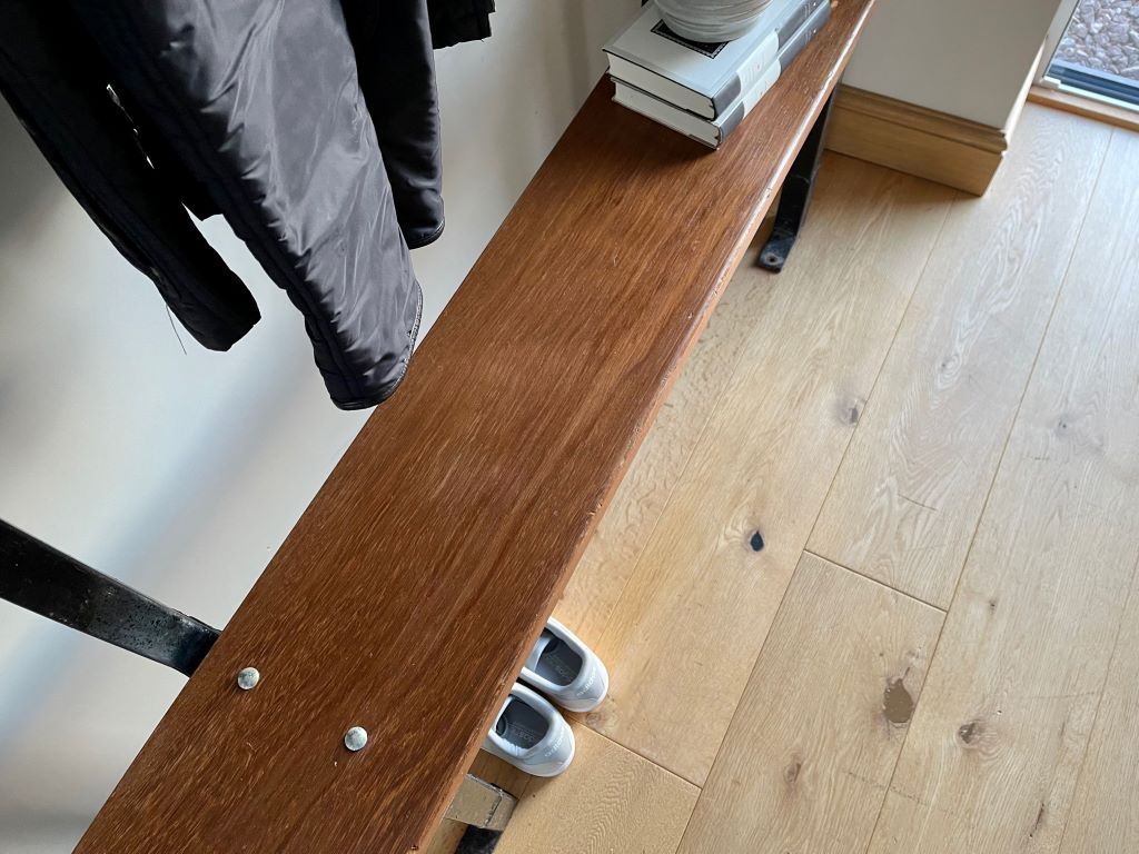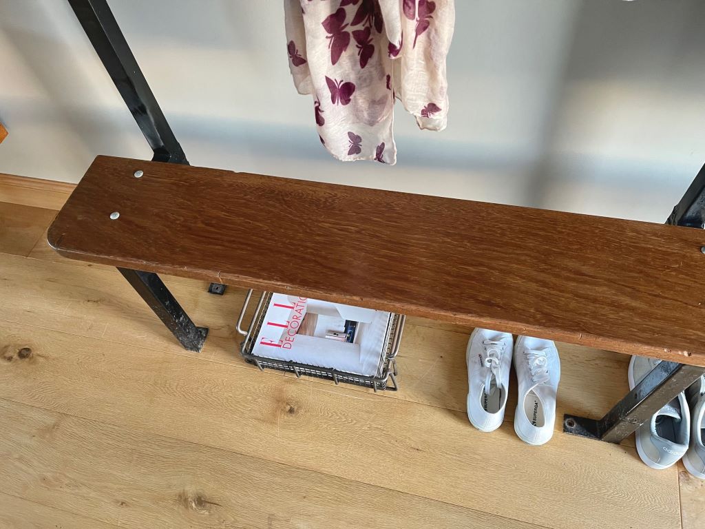 This gym bench and hooks dates to around the mid to late 1970’s and came to us straight from the school. A really good solid weight to the original steel frame and solid mahogany. It is in completely original condition. We just gave it a good clean, and teak oiled the wood for replenishment and refresh.