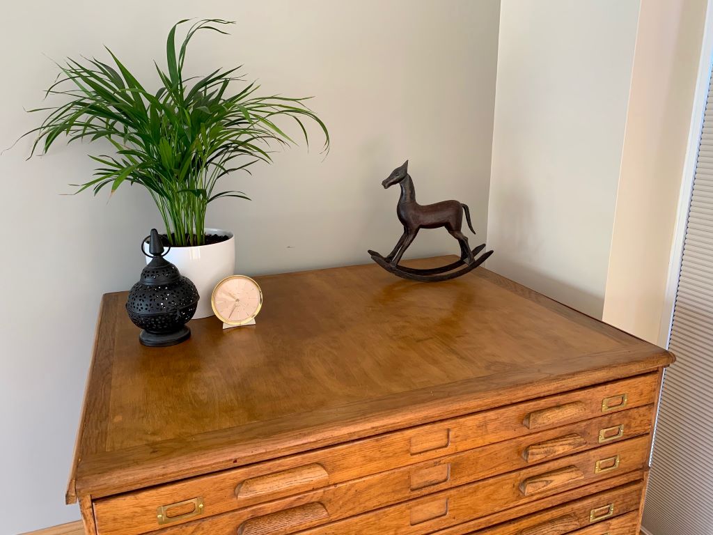 9 very large, clean and very usable drawers. Stunning all round colour, amazing original drawers and handles. Fantastically on trend styling that will just keep getting better with age. Very hard to find chests of this size and age that are complete and in excellent original condition!
