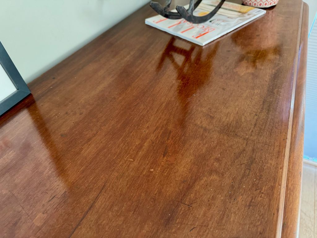 We love the beautifully coloured wood, the handles and the practicality of those gorgeously deep drawers. Antique chic!