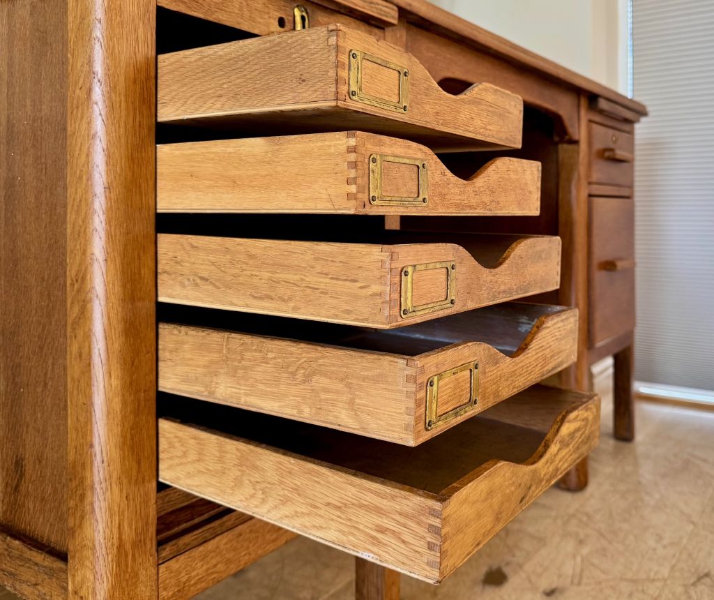Oak Tambour Fronted Desk by Astrola, London, W6