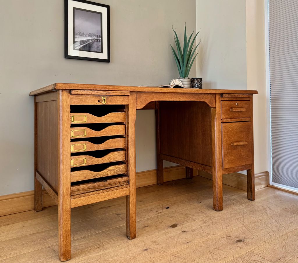A beautiful desk that can be used as a decorative/ dress piece or as a fully functioning desk space. It has been over 7 years since we have seen this model in stock and we can totally understand why they get snapped up so quickly. A real keeper!