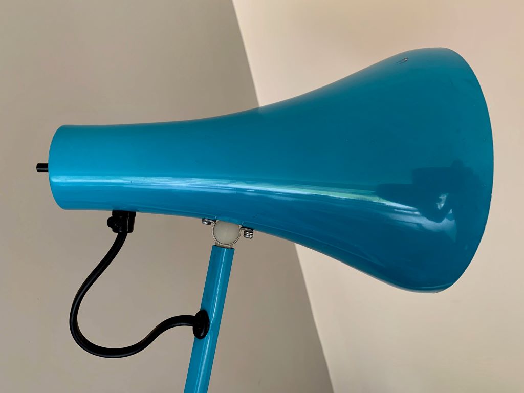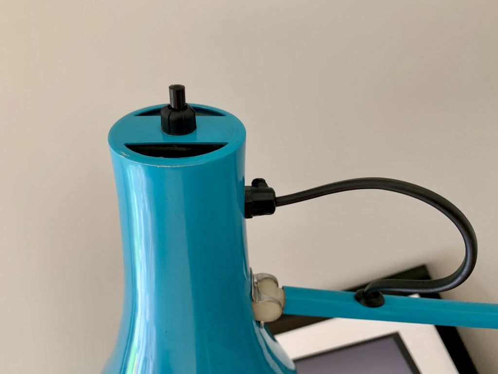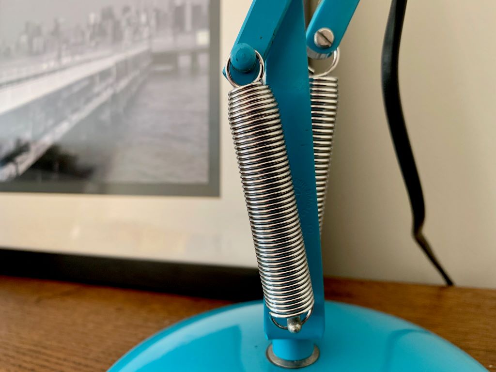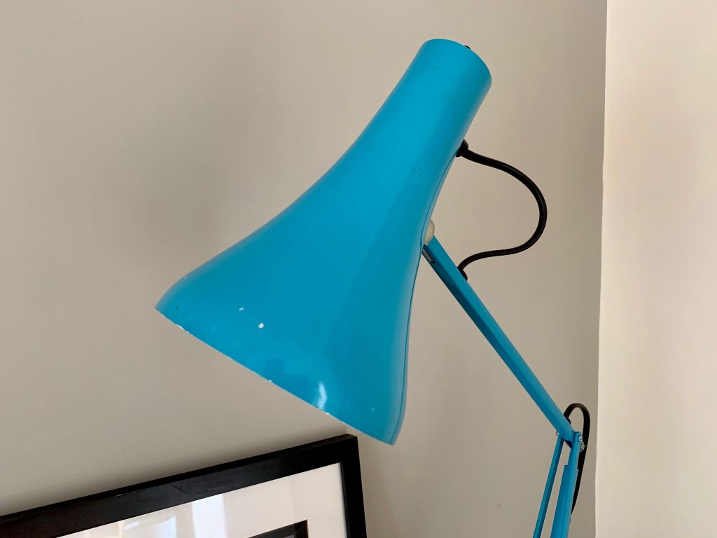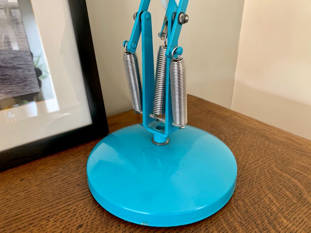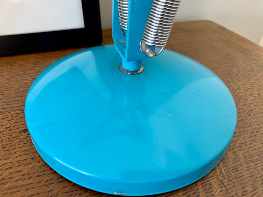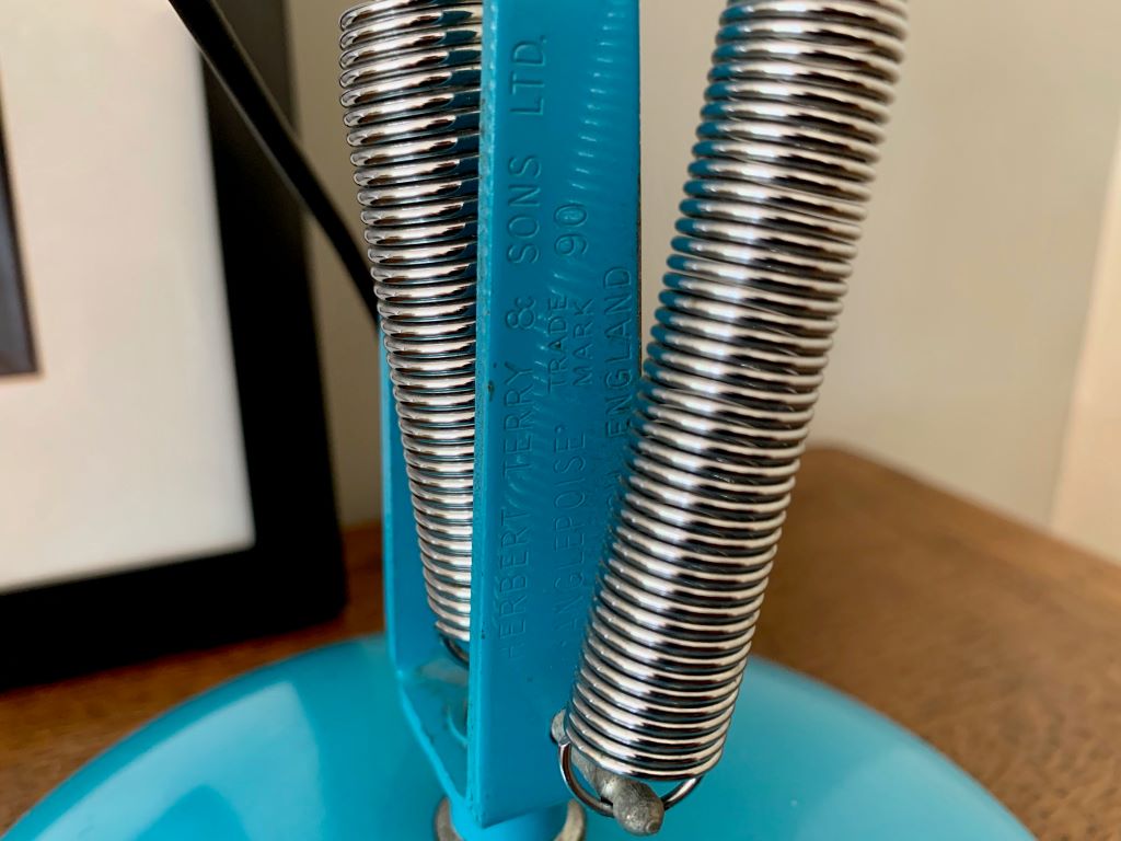 An original 1970’s Type 90 Anglepoise lamp in its original pale blue paint colour. Herbert Terry produced the Type 90 for Anglepoise in 1973 until 1983 when they were taken to mass produced (Type 90 Apex) and no longer produced by Herbert Terry in Redditch. A very nicely styled and aged original lamp in a great colour and original vintage condition. The condition is exceptional with very clean springs and the original Anglepoise sticker inside the shade. The lamp also has the stamp of the Anglepoise Trademark Type 90 on the base fork uprights (see photographs) to prove its heritage and authenticity.