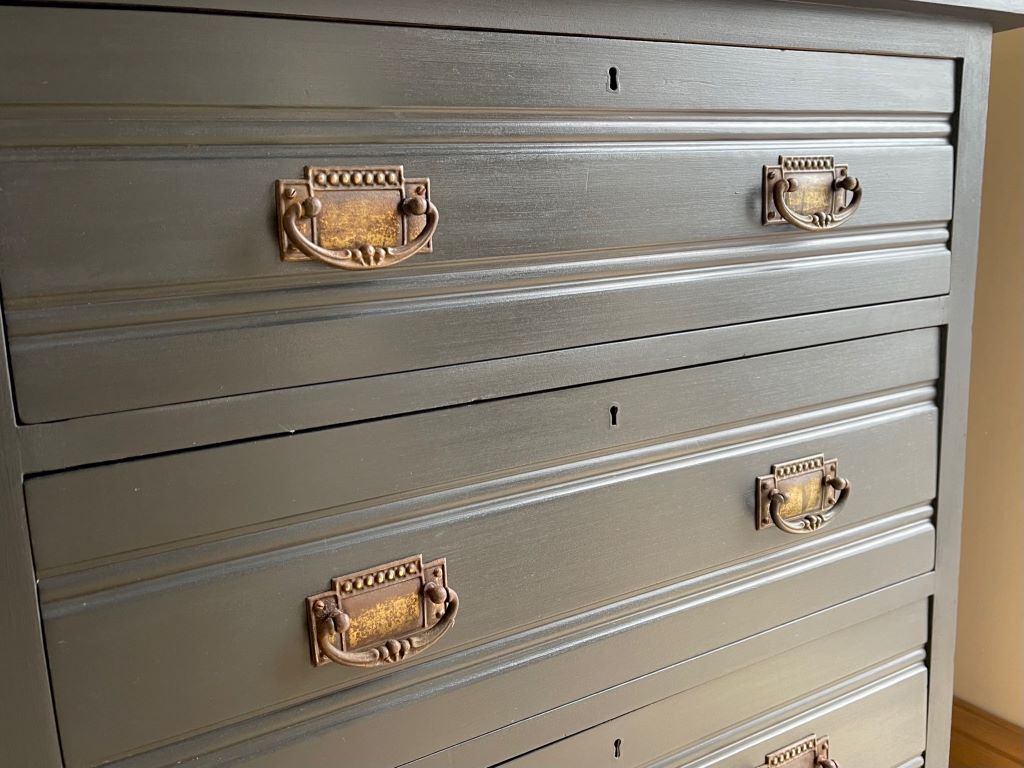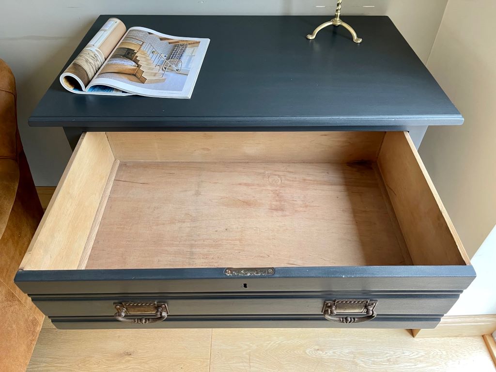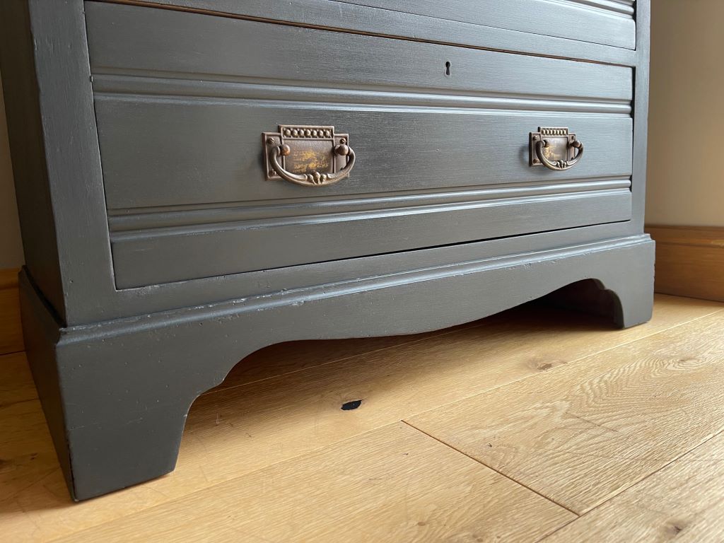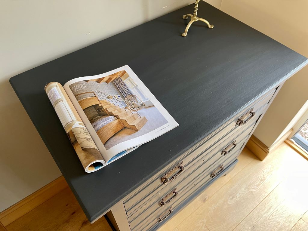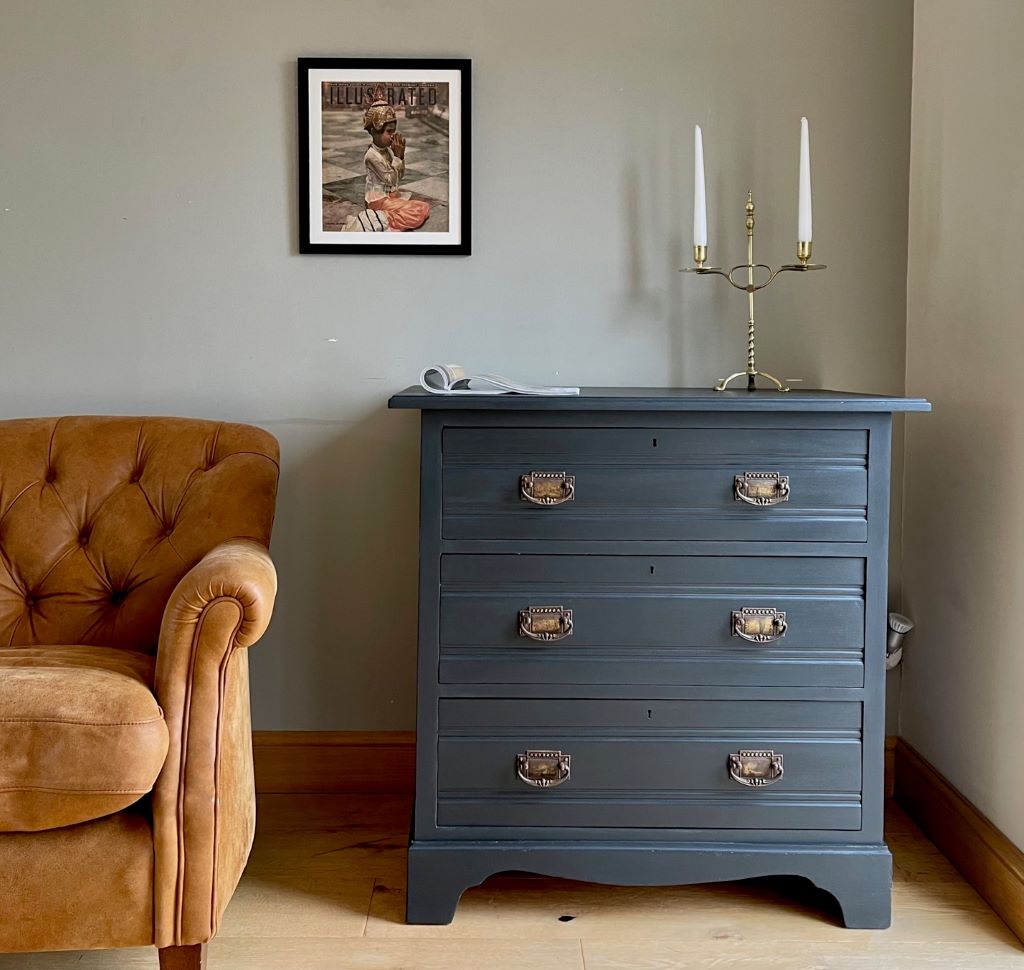 We love the colour and the fully finished effect. Transformed from dowdy ‘brown’ to a contemporary classic that will adapt and fit with a plethora of interior styles. The storage is cute, chic and super stylish. This chest of drawers could be used in practically any room you needed them.