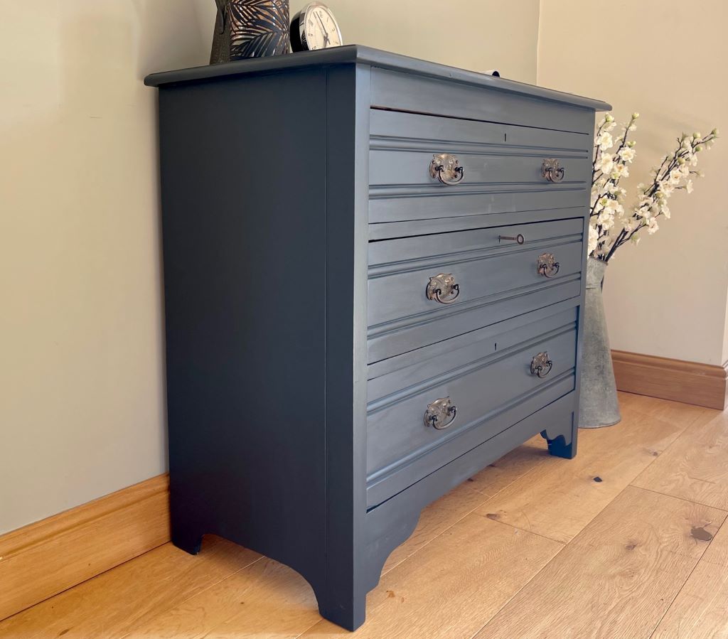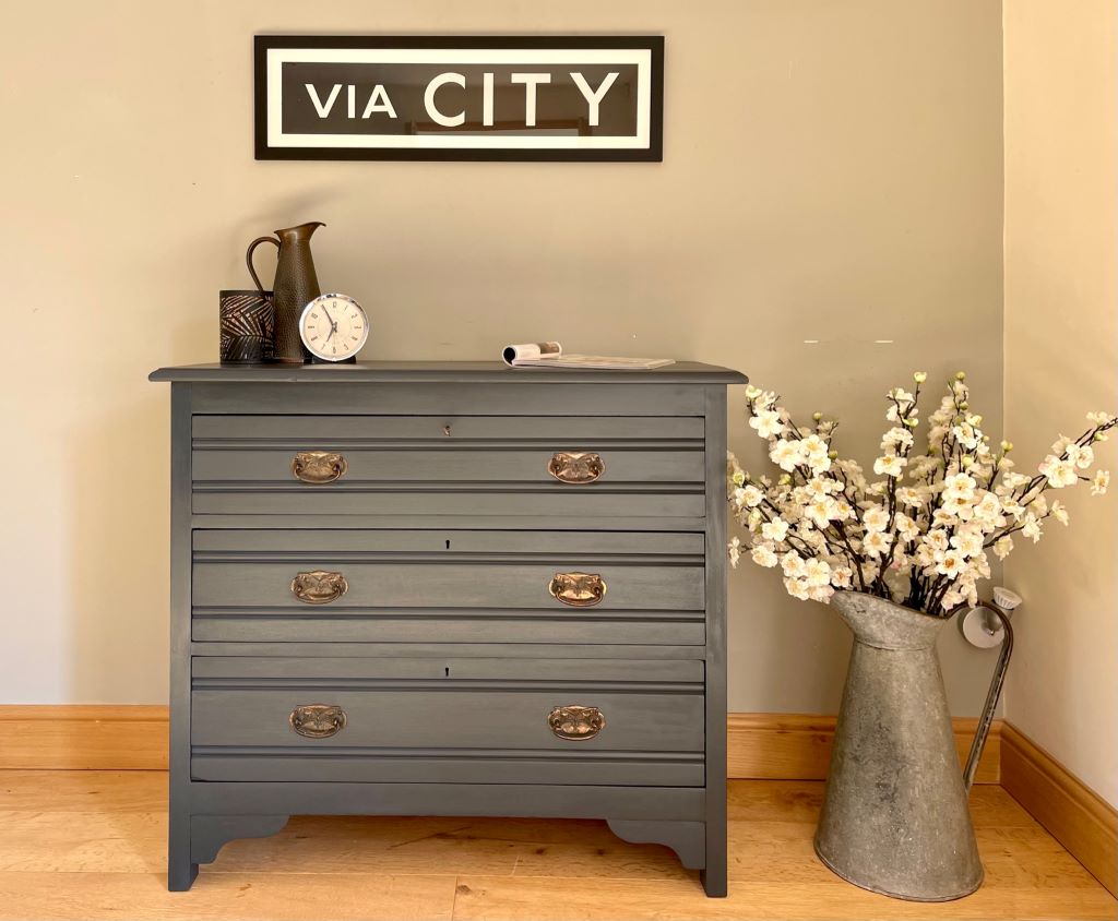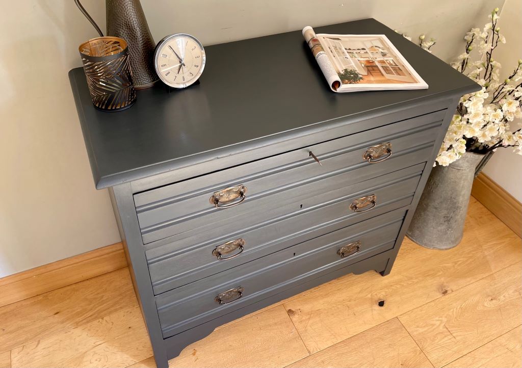 We love the colour and the fully finished effect. Transformed from dowdy ‘brown’ to a contemporary classic that will adapt and fit with a plethora of interior styles. The storage is generous and super stylish. This chest of drawers could be used in practically any room you needed them.