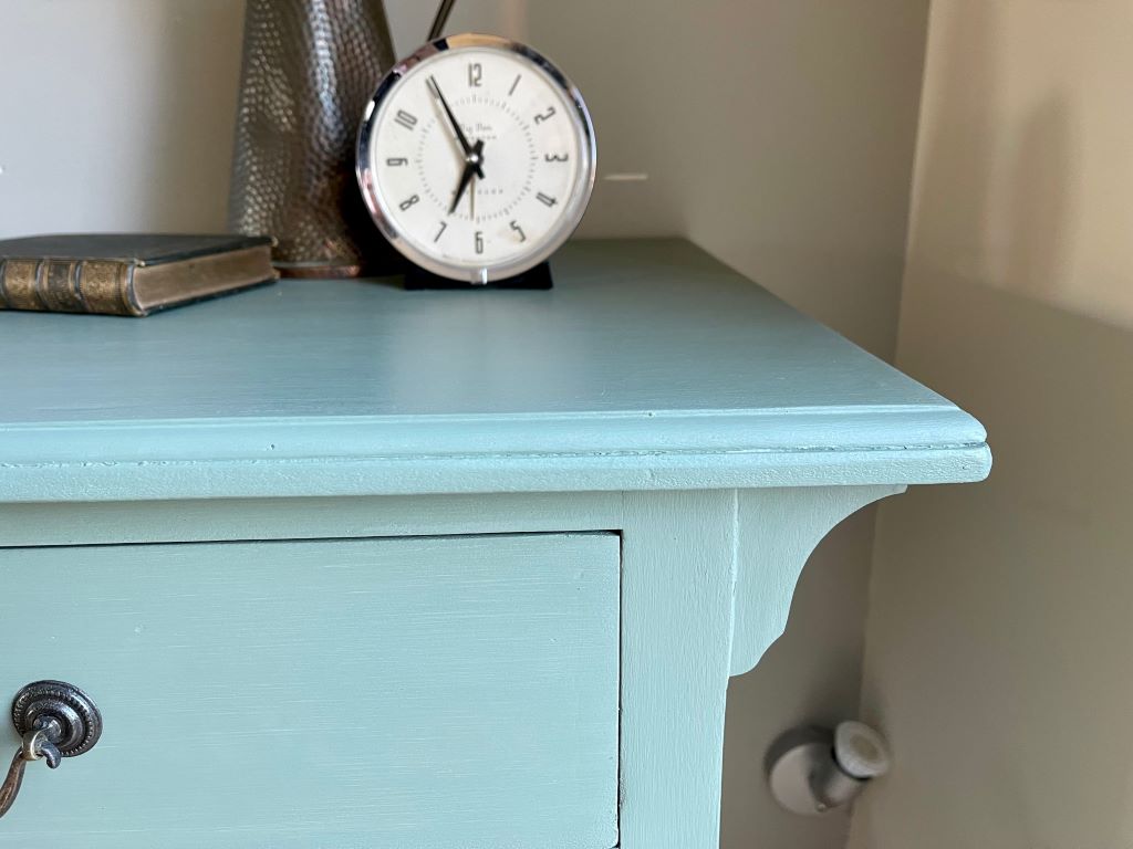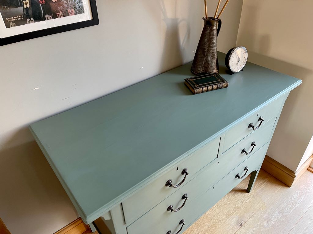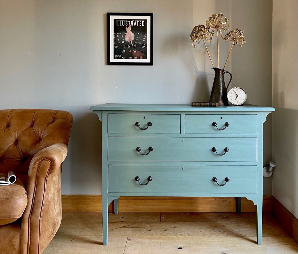 We love the colour and the fully finished effect. Transformed from dowdy ‘brown’ to a contemporary classic that will adapt and fit with a plethora of interior styles. The storage is cute, chic and super stylish. This chest of drawers could be used in practically any room you needed them.