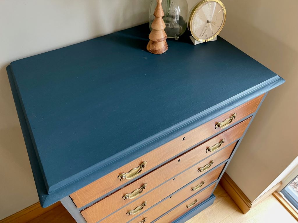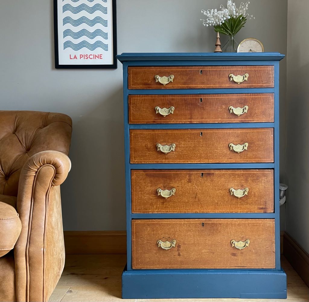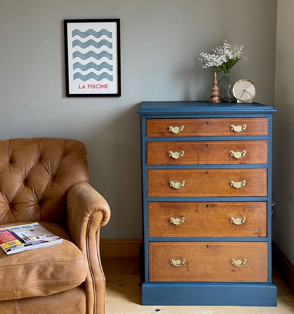 We love the colour and the fully finished effect. Transformed from dowdy ‘brown’ to a contemporary classic that will adapt and fit with a plethora of interior styles. The storage is generous and super stylish. This chest of drawers could be used in practically any room you needed them.