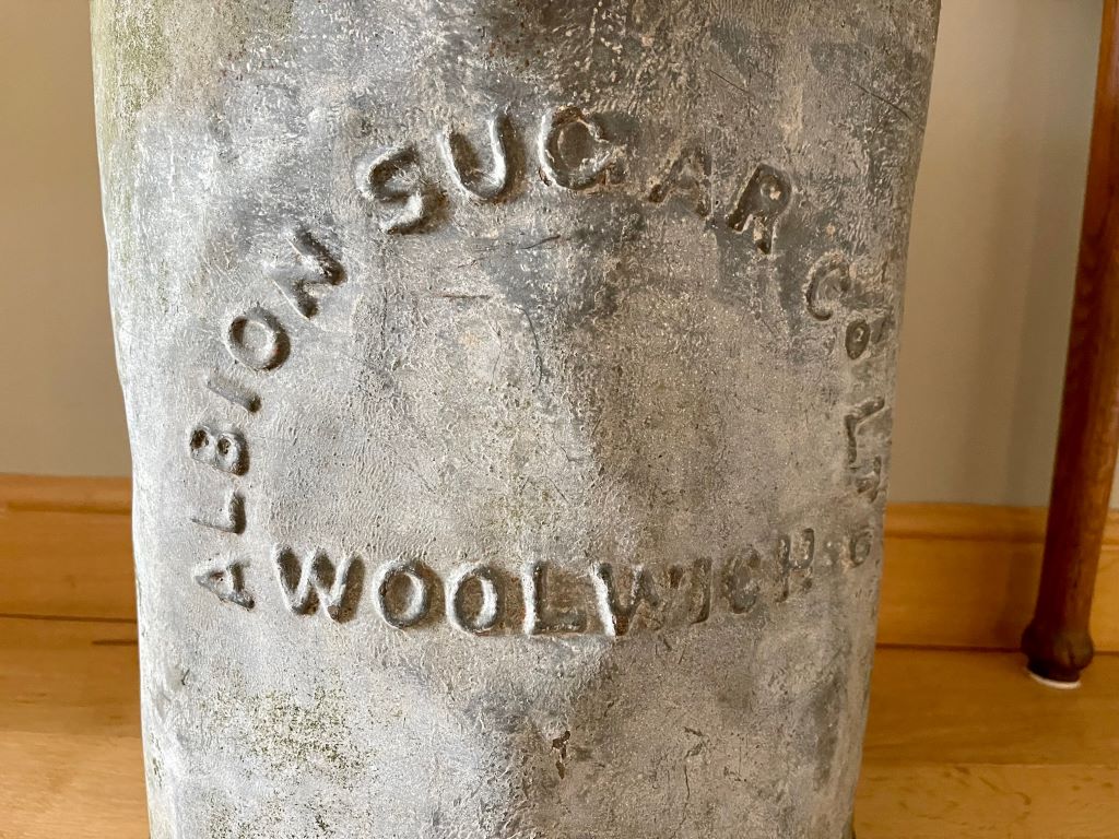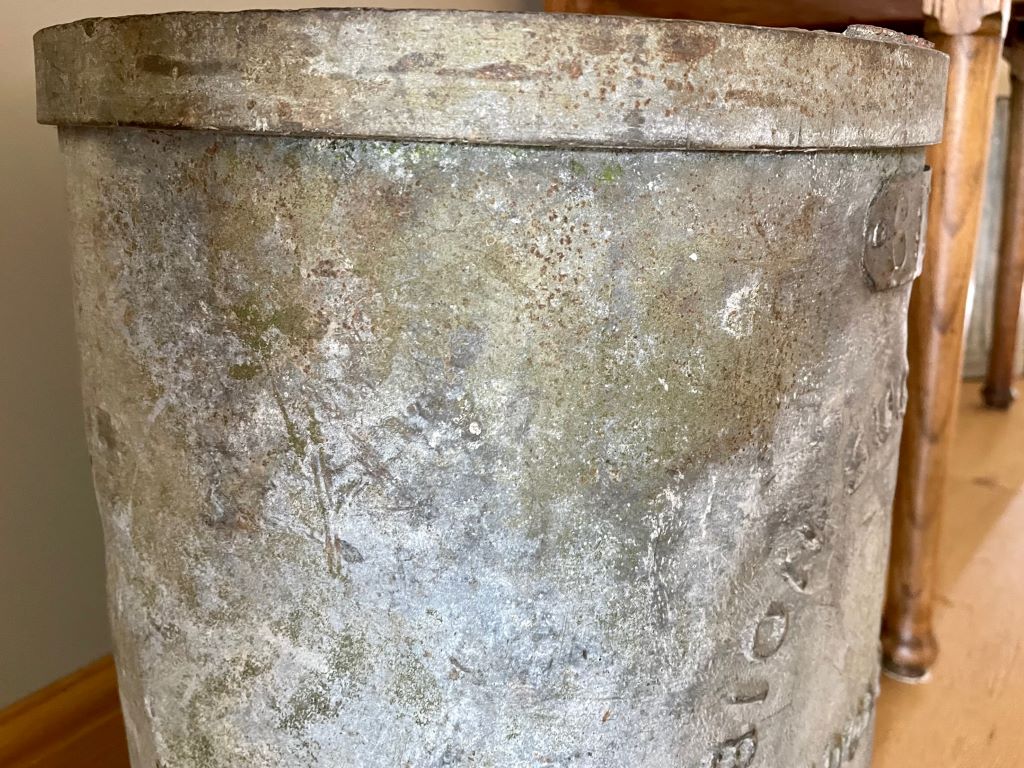 A beautiful early 20th Century galvanized sugar container. We adore the perfectly aged patina and original embossed lettering on the front. The size of this piece means it could be a garden planter, an indoor umbrella store or indoor plants/ flowers pot – or even an industrial waste bin. So many ways to be able to use and adore the perfectly aged piece of UK social history. Such a talking piece?