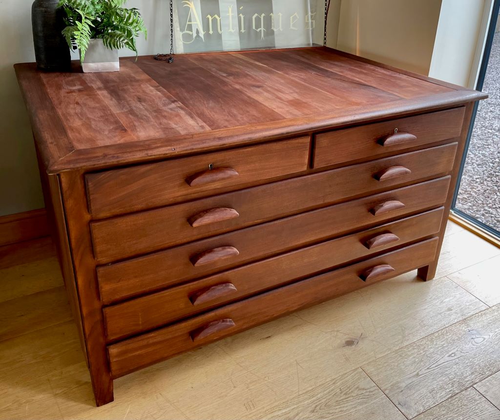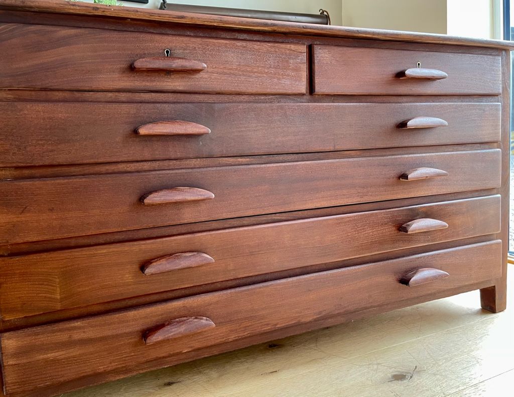 We think the colour and grain are now superb and pretty exceptional. The height of these drawers would make make a fantastic TV Stand, or of course artist drawers, drawers for collectors, etc etc. Use them exactly where you need them. Immense storage in stunning style and exceptional condition. These chests are never with us long and we completely understand why.
