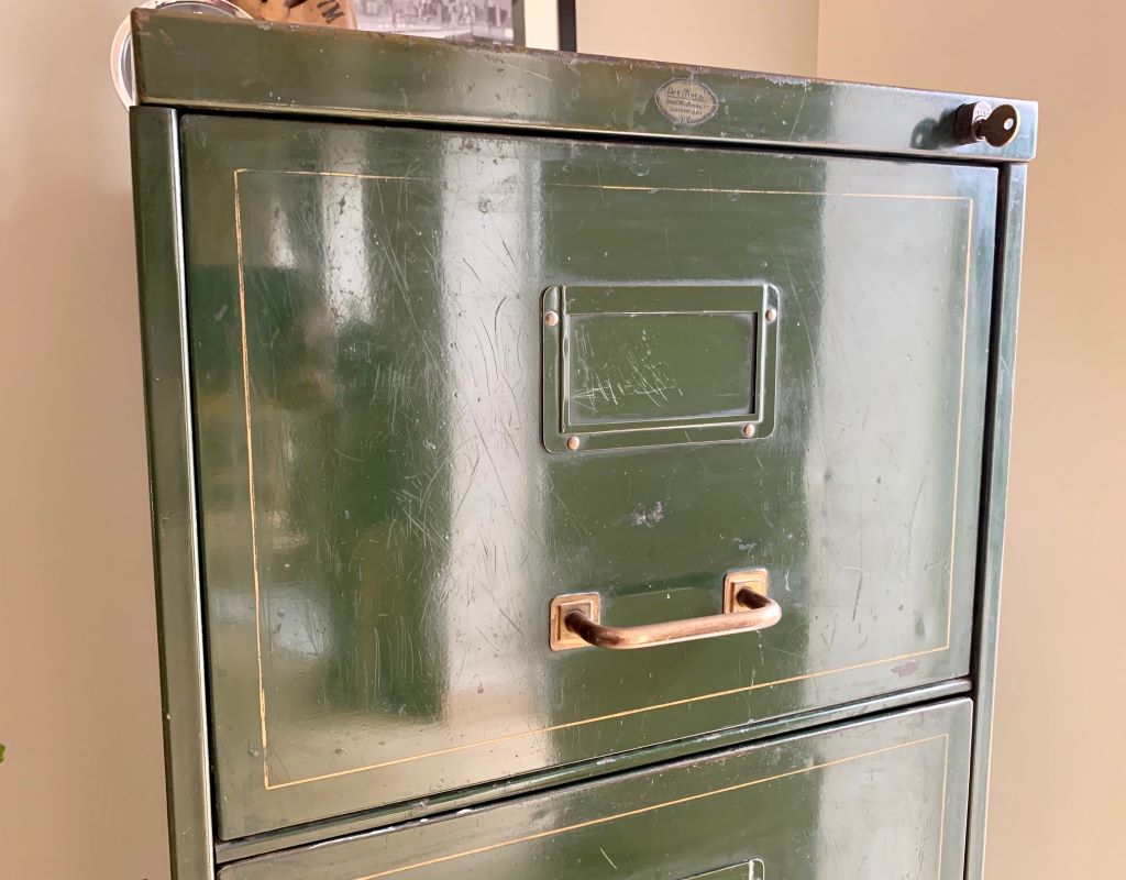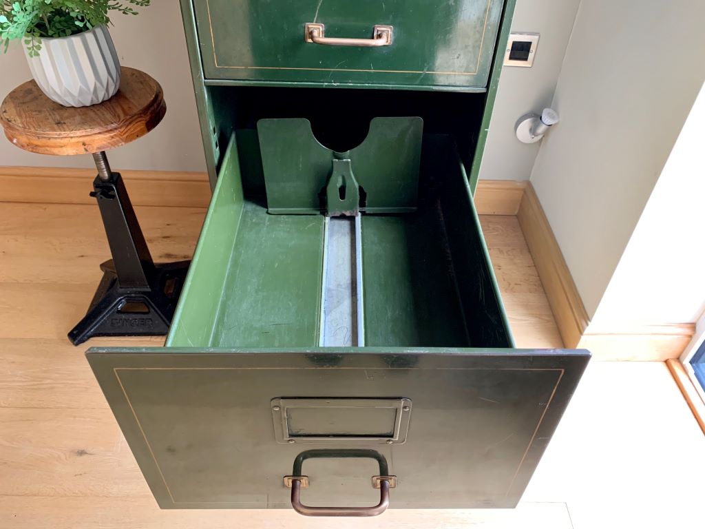 An unusual set original mid century steel filing drawers by Art Metal (London, SW1). Most of these cabinets are by Roneo. Art Metal cabinets are much harder to find; especially in this condition Great colour, nice detail to the drawer fronts and perfect brass ware. A very nice size for home or office. The cabinet comes complete with key for the lock. The cabinet and drawers have all been fully cleaned and the runners re-oiled. Superb condition for its age with plenty of industrial design and character. Industrial style and practicality all rolled in to one.