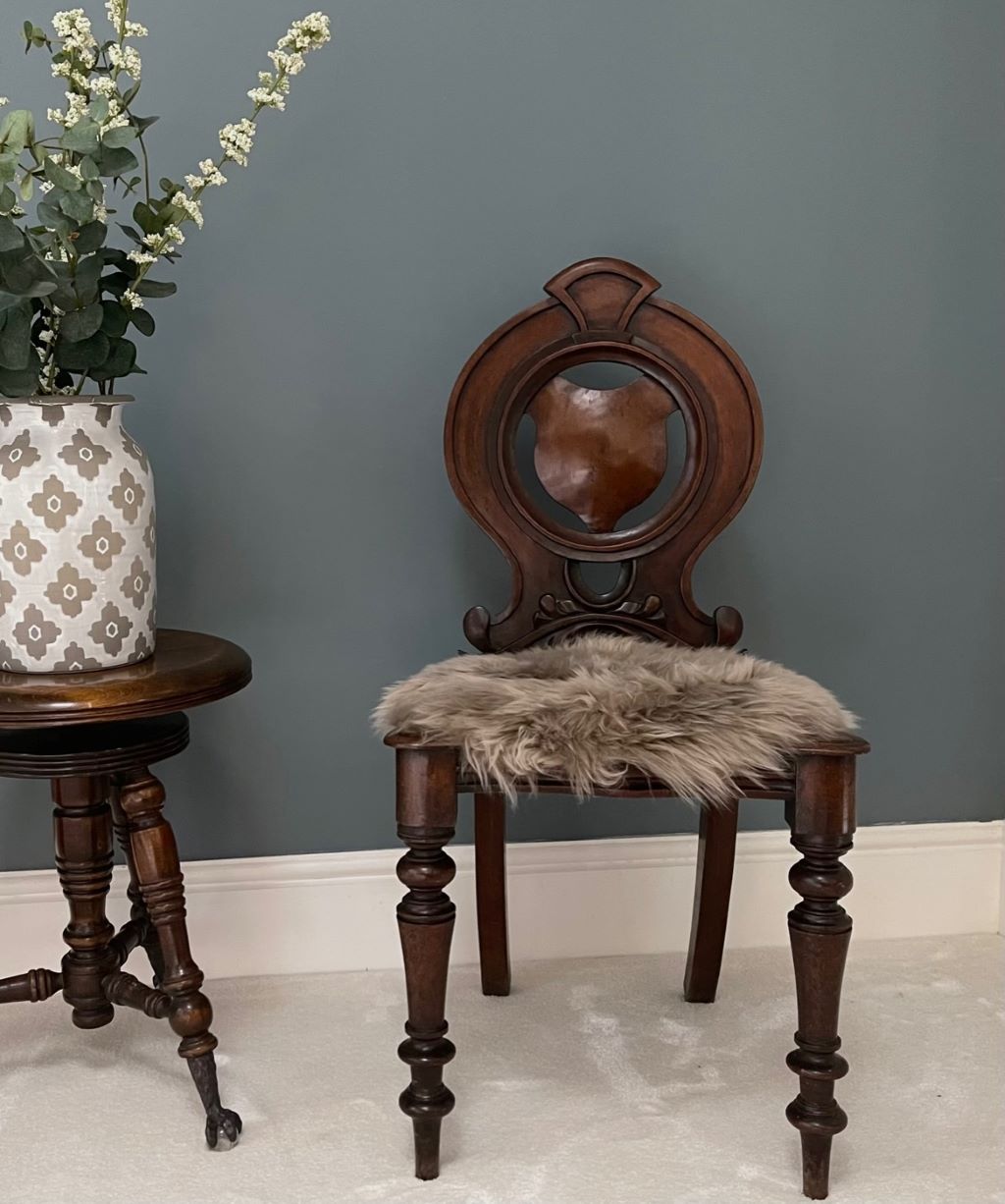 This is a gorgeous 19th Century carved chair in Walnut. It is in a very pretty Victorian design which we think lends itself perfectly to a bedroom chair or Victorian styled bathroom/ en suite chair. It is beautifully carved and in nice antique condition with solid joints and no wobbles. Just a beautiful decorative chair to make a statement in a corner, where you need it to.